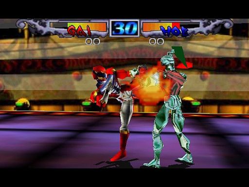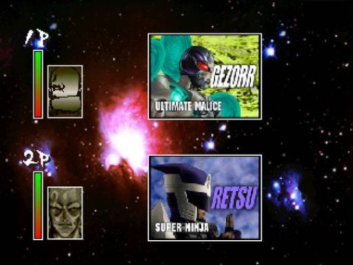 Die acht Kämpfer sehen aus wie billige Imitate der Power Rangers und prügeln sich alle um den Endkampf mit Imperator Zorr, der die Erde unterworfen hat. Außer diesem "genialen" Story Modus und einer VS Variante steht euch nur noch der Trainings Modus zur Auswahl. Dieser kommt in zwei verschiedenen Varianten. Einmal als freies Training und einmal in Zusammenspiel mit "Robot". Die Blechkiste merkt sich eure Moves und erlaubt es euch, gezielter zu trainieren.