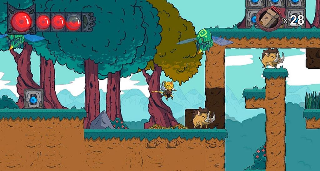 Vampire, Aliens, waffenstarrende Roboter oder muskulöse Helden sucht ihr vergebens. Titelheld Ikki ist.....eine Katze. Bösewicht Morodir hat den »Fang of Alliance« gestohlen. Ohne diesen bricht Chaos aus und das Reich ist dem Untergang geweiht. Also zieht ihr los um eben jenen zurückzuholen. Klingt simpel, ist es auch. Allerdings wird dies im Spiel mit weit mehr Text, hübsch ausgeschmückt präsentiert. Lediglich mit einem Schwert bewaffnet marschiert ihr sodann los und metzelt die ersten Gegner. Böse Raupen, Fledermäuse, Echsenmänner, Schnecken (!) und allerlei anderes Getier tritt euch im Zuge des Abenteuers entgegen. Zum Glück bekommt ihr frühzeitig einen Bogen. Neben Laufen, Entdecken und Kämpfen könnt ihr Ikki in Dörfern mit Heiltränken und Powerups eindecken. Denn überall sind Schatzkisten versteckt. Dort gibt es Münzen, Diamanten, Rubine und hin und wieder sogenannte »Ores« zu finden. Mancher Dorfbewohner verbessert damit Waffen und kann sogar dauerhaft euren Energievorrat erhöhen. Altbewährtes eben.