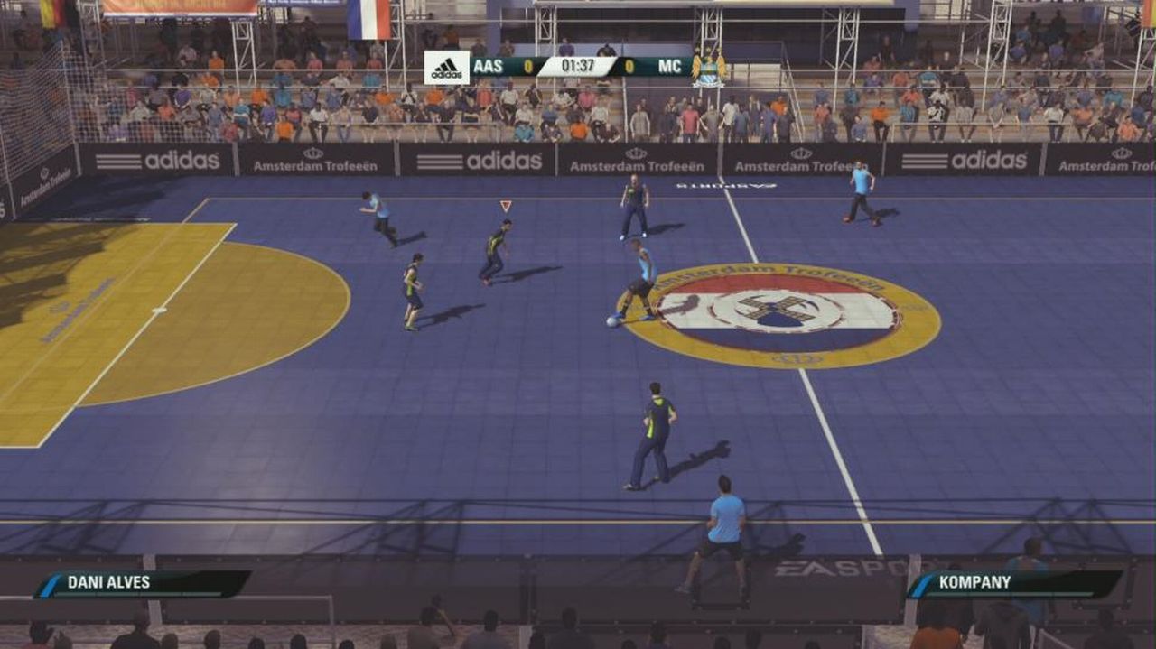 Dass hier ein und das gleiche Team dran war, merkt man nicht nur am Gameplay, sondern auch an der Grafik. An die Qualität von FIFA 12 kommt FIFA Street nicht heran, weiß aber trotzdem zu gefallen. Wie schon erwähnt, gehört der Comic Look der Vergangenheit an. Die Spieler sind sehr realistisch gehalten und sehen ihren realen Vorbildern unglaublich ähnlich. Besonders gut gefallen haben mir die Animationen. Zwar gibt es immer noch hier und da einige hakelige Bewegungsabläufe, aber zum größten Teil verhalten sich die Fußballer sehr realitätsgetreu, fallen über die Bälle, stolpern und tricksen, wie im Fernsehen. Ganz große Klasse. Im Spielgeschehen sieht es wirklich wunderbar aus. Aber auch die Hallen und Straßenplätze sind alle unterschiedliche designt worden und kommen mit tollen Details wie Spiegelungen am Boden oder Zwischenrufen der Fans, die am Seitenrand stehen. Kommentatoren gibt es diesmal keine. Vermisst habe ich sie nicht. Die Rufe und Jubelschreie kommen viel authentischer rüber und vermitteln ein tolles Straßenflair. Der Soundtrack ist wiedermal stark, kommt aber nicht an den von FIFA 12 heran, da hier die Musikauswahl geringer ist.