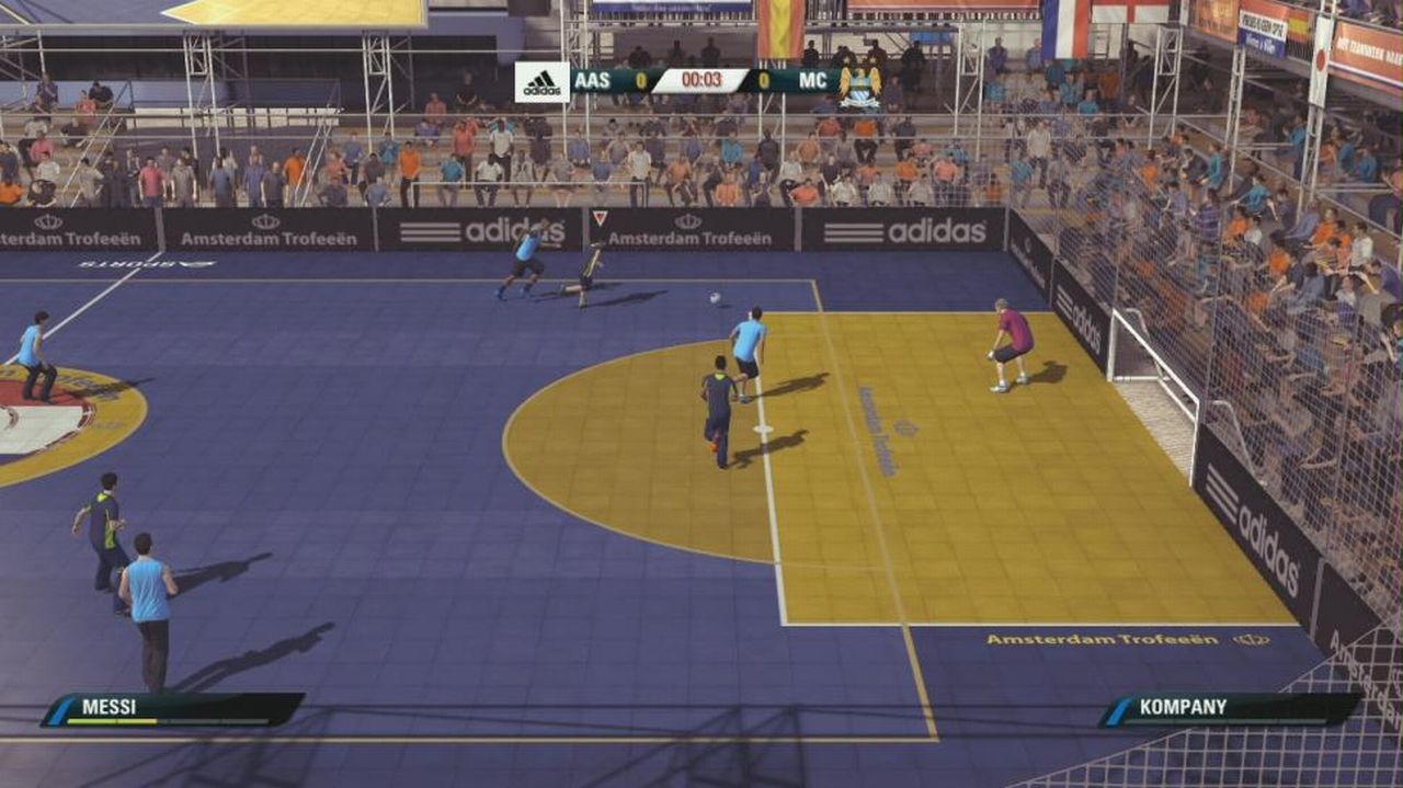 Haltet ihr die LT Schultertaste gedrückt, könnt ihr mit dem linken Analgostick den Ball am Fuß behalten und ihn in jede Richtung vom Gegner fernhalten, was vor allem in Zweikämpfen äußerst wichtig ist. Auf diese Art könnt ihr ganz genau vorgehen und euren Gegenspieler tunneln, austricksen oder den Ball über ihn lupfen. Das funktioniert, indem ihr blitzschnell auf RB umschaltet und mit dem rechten Analogstick den jeweiligen Trick vollführt. Anfangs ist das neue Street Ball Control System im Zusammenspiel mit LT, RB und den beiden Analogsticks zwar etwas tricky, geht aber nach einigen Spielen in Fleisch und Blut über. Ehe ihr euch verseht, trickst ihr, was das Zeug hält und jagd einen Ball stylischer ins Tor als den letzten. Je nach Platz oder Halle unterscheiden sich zudem die Tore in ihrer Größe. Vor allem im Modus »Letzter Mann« ist es gar nicht so leicht, den Ball in ein Schuhkarton großes Tor zu befördern.