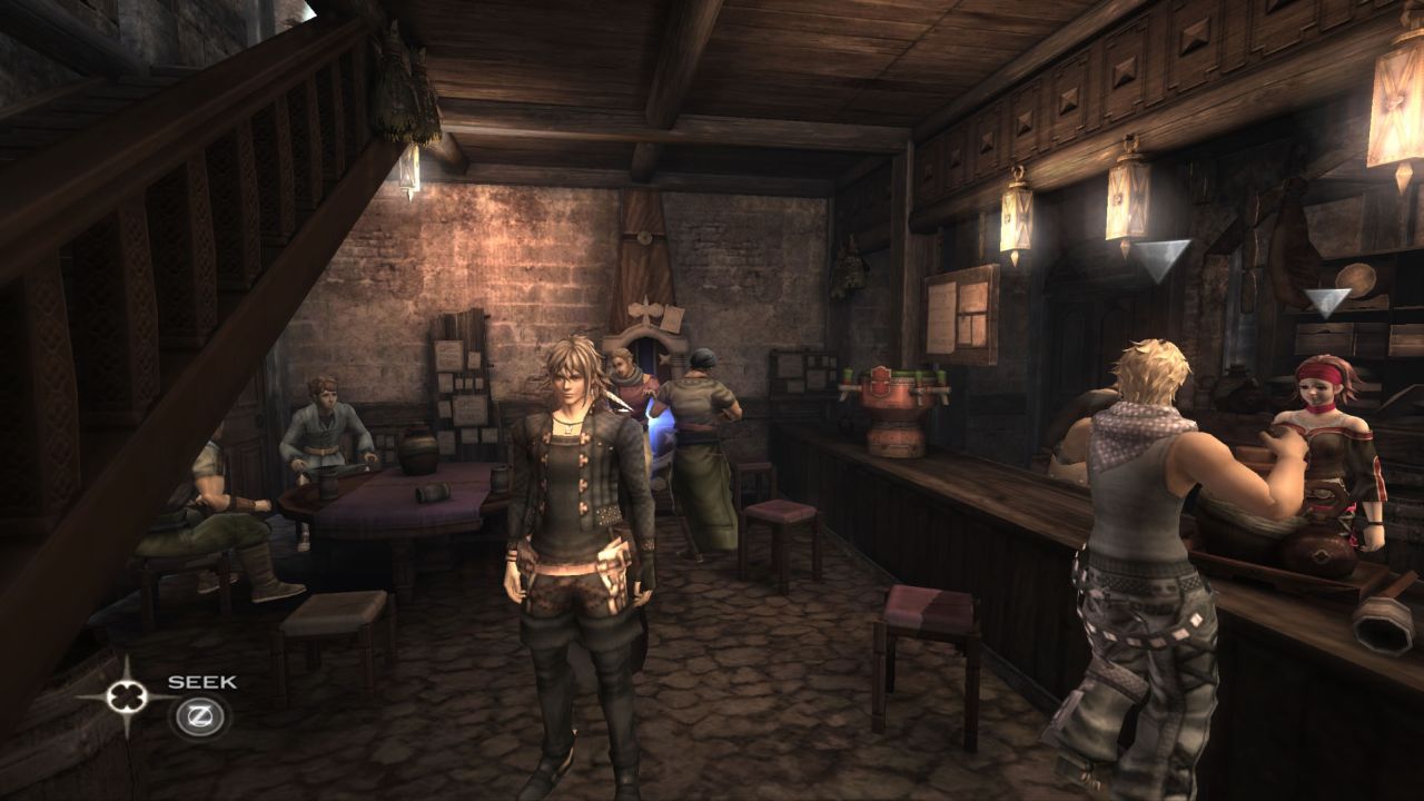 Die Gestaltung der Welt von The Last Story muss Sakaguchi ebenfalls viel Freude bereitet haben. Selten habe ich so schöne Levelarchitektur gesehen. Die Insel sieht mit der großen Stadt, dem wuchtigen Schloss und den vielen Arealen sehr stimmig aus und zeigt, dass Artdesign bei einem Rollenspiel einiges hermachen kann. Dass aber die Framerate sogar beim Umherlaufen merklich sinkt, führt zu einem Abzug in der B-Note. Trotzallem gehört The Last Story stylistisch zu den schönsten J-RPGs, die ich jemals gesehen und gespielt habe. Dazu trägt auch das sehr gute und detaillierte Charakterdesign bei. Waren die Helden bei Xenoblade Chronicles noch recht texturarm, strotzen Zael, Dagran und Co. nur so vor Detailtreue und Charme. Sogar viele NPCs, die ihr im Laufe eures Abenteuers trefft, wie etwa den schusseligen Horace oder die Ariela, die Besitzerin der Taverne, bleiben euch jederzeit im Kopf.