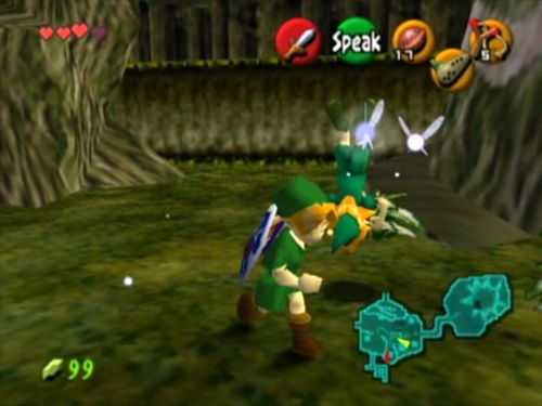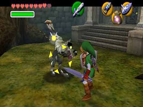 Der Sprung in die dritte Dimension ist fantastisch geglückt und die Fans sehen sich einem unglaublichen Abenteuer gegenüber. Dabei haben die Entwickler die Vorzüge aller alten Zelda Spiele beibehalten und durch neue, geniale Gameplay Elemente ergänzt, die die ganze Videospielindustrie beeinflussen werden. So dürfen wichtige Gegenstände und Waffen einfach auf die zur Verfügung stehenden „C“-Knöpfe zugewiesen werden, ganz nach eigener Vorstellung. Das lästige Aufrufen der Menüs entfällt und der Spielfluss wird in keinster Weise gestört. Noch besser ist das Lock-On System. Per Knopfdruck fliegt Navi zu einem Gegner und markiert diesen. So könnt ihr den Gegner umzingeln und von mehreren Stellen attackieren, ohne ihn aus den Augen zu verlieren. Man hat die totale Kontrolle im Kampfgeschehen. Das revolutionäre System wird in Zukunft in allen 3D-Nachfolgern übernommen und andere Entwickler nehmen sich daran ein Beispiel. Revolutionär sind auch die Einsatzmöglichkeiten der titelgebenden Ocarina der Zeit. Mit ihr lassen sich bestimmte Musikstücke erlernen, die allesamt Auswirkungen auf den Spielverlauf haben.