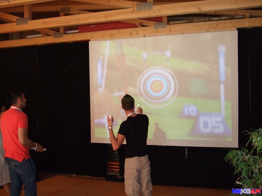 Bei der Schneeballschlacht mußte ich mich über das Balance Board hinter Schildern verstecken um nicht selber getroffen zu werden und dann mittels Wiimote die anderen abwerfen. Beim Kung-Fu machten die zwei Reihen hinter mir eine bzw. mehrere Bewegungsabläufe vor, die ich dann auf dem Board „im richtigen Takt“ nachmachen musste. Das Fliegen als Vogel ist mir dann nicht in die Wiege gelegt worden, denn die Flugbewegungen machten meinen Armmuskeln schon nach wenigen Minuten klar, dass sie hierfür nicht konzipiert wurden. Aber es brachte ziemlichen Spaß von Plattform zu Plattform zu fliegen und hierbei wie beim Dart- oder Bogenschießen auch noch den Landplatz mit der höchsten Punktzahl zu erreichen.