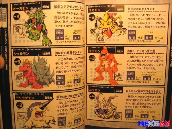 Im praktischen Din A5 Format gehalten, finden sich hier auf stolzen 112 Seiten (der Großteil Hochglanz & farbig) allerlei Tipps & Infos zu Digimons, Kampftaktiken und auch einige wenige Karten wieder. Auch zu den Duellen über das Communication Cable und der Verbindung mit dem Digimon Connector findet der Fan am Rande einige Infos, allerdings wieder einmal ausschließlich auf Japanisch. Immerhin die Kampfdaten der Monster sind mit englischen Kürzeln angegeben (HP, AP, etc.) und auch die Karten sind natürlich nahezu uneingeschränkt nutzbar. Trotzdem kein Muss für Spieler, sondern wohl eben eher etwas für die Sammlergemeinde.