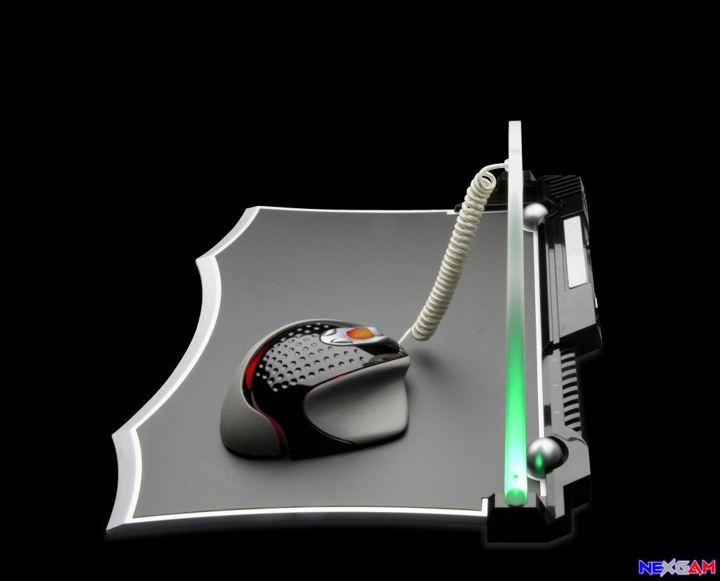 Die Headshot Maus machte in unserem Test nicht nur einen hervorragenden Eindruck – sie sieht auch noch verdammt gut aus. Sowohl die Maus, als auch das Drumherum. Denn der Plastikbogen, der wie eine schützende Hand über dem ganzen Setup ruht, sorgt für den nötigen Style-Faktor. Aus den beiden seitlichen Punkten des aURa Mauspads, an denen der Bogen angebracht wird, strahlen LEDs eure gewünschte Farbe in das Dunkel der LAN Halle oder des heimischen Zimmers. Wer ein Mensch der Bewegung ist, kann das Licht außerdem pulsieren lassen. Und wer Abwechslung braucht, wechselt einfach die Farbe oder die Helligkeit. All diese Lichtspielereien lassen sich ebenfalls für die Headshot Maus einstellen – natürlich unabhängig von der Beleuchtung des Mauspads. Last but not least funktioniert das Mauspad auch noch als USB 2.0 High-Speed-Hub und im Plastikbogen ist eine Kabelhalterung eingesetzt, so dass euch beim intensiven Zocken wenigstens in der realen Welt nichts mehr in den Weg kommt (siehe Bilder).