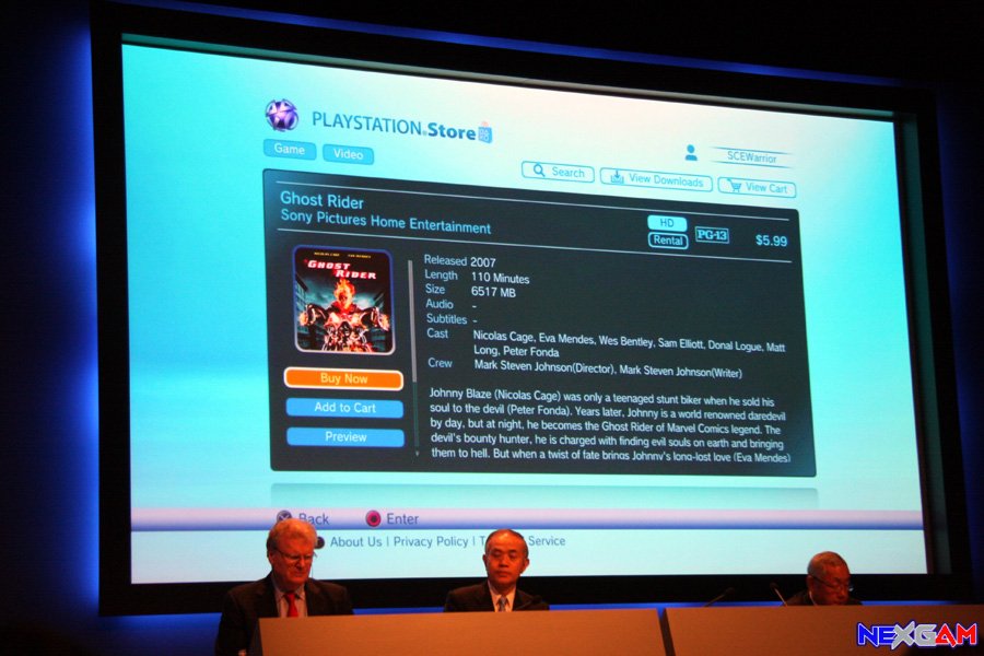 - 21.27: Der Content ist außerdem noch tragbar. Man kann es auf der PSP laden und mit sich herumtragen. Eric Lempel von PSN kommt und geht mit uns dort hinein. Er lädt XMB hoch und geht in den PS3-Store. Er lädt den Video-Store.
