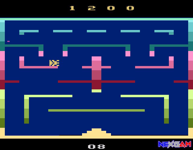 Genau genommen nur einen einzigen Schuss hält das stählerne Ungetüm nämlich aus, weshalb ihr euren Tank mit viel Vorsicht und noch besserer Reaktion um die zahlreichen Gegner herum manövrieren solltet. Hilfreich dabei die von Level zu Level variierende Struktur des Kampfgebietes, die durch Ecken und Barrieren einen gewissen Schutz vor feindlichen Attacken gewährt. Dabei allerdings nicht vergessen in aussichtsreichen Positionen den Feind mit reichlich Granaten zu bedenken (Feuerknopf), denn erst wenn eine bestimmte Anzahl vernichtet wurde, geht es eine Stufe höher. Erreichen die Horden hingegen das Energiezentrum, übt sich das Modul in Subtraktion eurer Bildschirmleben.