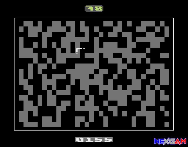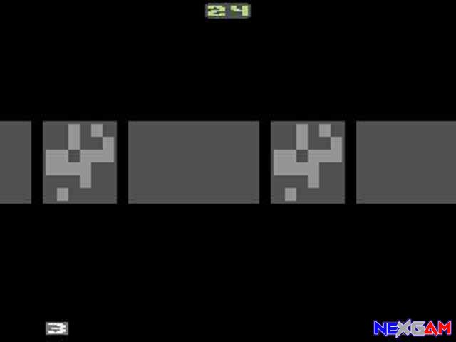 Bei dem VCS 2600 Titel sucht ihr nicht nach Terroristen, sondern nach bestimmten Mustern. Nach dem Startbildschirm, der für VCS Verhältnisse mit beeindruckenden Effekten gespickt ist, geht es per Knopfdruck auch schon los. Man sieht ein zufallsgeneriertes Spielfeld aus hellen Quadraten und muss nun das gesuchte Muster aus 6x6 Feldern finden. Um dieses anzuzeigen betätigt man ganz einfach wieder den Feuerknopf und man bekommt es am Bildschirm angezeigt. Allerdings sollte man sich nur an bestimmten prägnanten Punkten orientieren, denn je länger man die Vorlage anzeigen lässt, desto schneller verrint die Zeit.