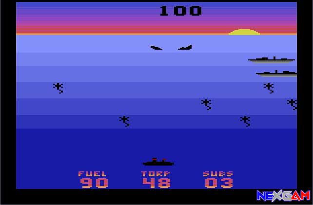 Das U-Boot befindet sich am unteren Bildschirmrand und kann horizontal bewegt werden. Mit einem Druck auf den Feuerknopf wird ein Torpedo abgeschossen. Über dem Boot befinden sich sechs Gegnerreihen. Die unteren drei Reihen bestehen aus den Wasserminen und in den oberen drei Reihen tauchen die Gegner auf. Manche Schiffe müssen schon mal mehr als einmal getroffen werden um auch versenkt zu werden. So werden für jeden Treffer Punkte gutgeschrieben. Alle 1000 Punkte bekommt man die Gelegenheit seinen Zeit- und Torpedovorrat wieder aufzufrischen indem man einen Vorratspack abschießt das vorbeischwimmt. Sollte man dieses nicht treffen können so ist dar Lebensverlust schon so gut wie vorprogrammiert.