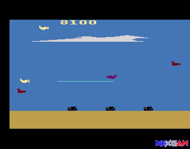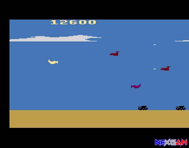 Wie bereits erwähnt, klaute man hier bei Activisions Side-Scrolling Shooter Chopper Command völlig ungeniert. Wie beim Klassiker seid ihr hier in der nach links und rechts scollenden (Wüsten)Luft, um eure sich durch den Wüstensand wälzenden Panzerkolonen vor heimtückischen Luftangriffen zu verteidigen. Ein Druck auf den Feuerknopf lässt die Bordwaffen sprechen, während ihr durch die nach links und rechts (Defender lässt grüßen!) scrollenden Level steuert. Ist eine Gegnerreihe abgeräumt, geht es ab in den nächsten Level, wo naturgemäß noch stärkere Gegner zur Bereicherung des eigenen High-Score Kontos warten.