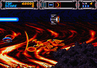 Das Leveldesign gibt sich erfreulich abwechslungsreich und die Endgegner sind toll präsentiert. Neben den Gegnern macht euch des Öfteren die Umgebung zu schaffen; insbesondere der Lava-, Wasser-, und Untergrund-Level hat die eine oder andere böse Überraschung für Euch: Explodierende Lavabrocken, tückische Strömungsveränderungen und von der Decke fallendes Gestein ist ebenso mit der Partie wie tödliche Sackgassen in der Underground-Welt. Zudem ändert sich auch mal die Spielgeschwindigkeit, so saust ihr z.B. in der Volcano-Stage nach einer Weile mit einem ziemlichen Tempo über die gefährlichen Lavamassen. Da ist schon etwas an Memorizing nötig. Zwar gilt Thunderforce III als eines der einfacheren Shoot-Em-Ups für das Mega Drive, die Wasser-und Untergrund-Welt machten mir bei letztmaligen Spielen aber mehr Mühe, als ich es von damals in Erinnerung hatte. Doch mit ein wenig Auswendiglernen und der Hunter-Waffe ist das Spiel ganz gut zu schaffen. Die Endgegner sind zum Großteil mit der richtigen Bewaffnung kein wirkliches Problem; ohne Schild und nur mit der Standardwaffe sind sie aber auch nicht gerade leicht. Die Designer spendierten neben fünf Leben auch ein paar Continues, sodass auch Einsteiger einiges vom Spiel sehen werden. Für mich nicht unbedingt ein Nachteil; geben sich viele andere MD Shooter wie Gaiares, Tatsujin oder Hellfire unnachgiebig und extrem schwer.