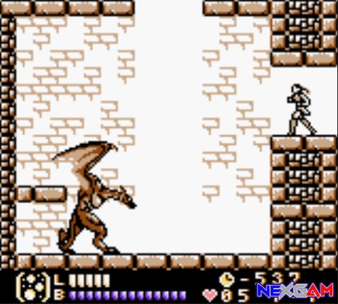 Das Spielgeschehen, das trotz kleiner Abzweigungen sehr gradlinig ist, wird durch gemeine Fallen oder durch versteckte Räume ein bisschen aufgelockert, wobei richtige Freaks eine gewisse Zeit mit dem Titel verbringen dürften, ehe sie die Items Axt, Uhr, Dolch, Weihwasser und Bumerang ihr Eigen nennen können. Denn erst mit einem vollen Inventar könnt ihr den finalen Abspann begutachten. Doch bis dahin ist es noch ein langer Weg, die wenigen Stages sind extrem lang und bis zum Rande gefüllt mit Gegnern. Um dem hohen Schwierigkeitsgrad entgegen zu wirken, werdet ihr meist sofort nach eurem Ableben genau an selbe Stelle gebeamt, an der ihr vorher ins Grass gebissen habt. Und dank Passwortsystem und 2 Spielmodi (Standard / Light) sollte es eigentlich jeder schaffen Castlevania Legends einmal durchzuspielen. Kenner der Serie werden auch ein paar helle Momente erleben, etwa wenn der Sohn Draculas zum Endkampf einlädt. Hierbei wird dann auch noch gleich erzählt, dass die beiden eine Liebesbeziehung hatten und Sonia ein Kind von ihm erwartet (...). Aber vielmehr möchte ich von der Story nicht preisgeben.