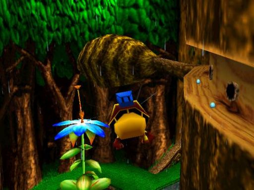 Als Bär Banjo beginnt ihr eure lange Reise zunächst in alter Jump and Run-Manier rennend, hüpfend, schlagend und kletternd durch die fehlerlos dargestellte 3D-Landschaft, in welcher ihr Euch völlig frei bewegen könnt. Später erlernt ihr dann unter Mithilfe des kurzsichtigen Maulwurfs Bottles weitere Spezialattacken und Hüpfmanöver bis hin zu Flugeinlagen. Das Move-Repertoire ist ganz große Klasse, hält das gesamte Spiel über bei der Stange und macht Banjo-Kazooie neben vielen anderen Dingen so spielenswert.