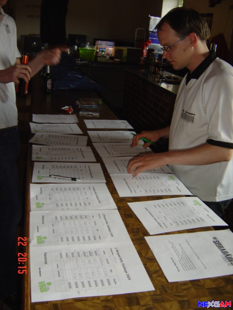 Die ersten beiden Plätze der offiziellen SEGA Meisterschaft 2009 konnten hier die zwei SEGA-Club Mitglieder „Heat the Dragon“ (1. Platz) und „Danseba“ (2. Platz) erhaschen, gefolgt vom neXGam Mitglied „oizombie“ (3. Platz). Jeder der Teilnehmer bekam nach Mitternacht zum Samstag auf Sonntag einen der drei großen neXGam Pokale durch „Mistercinema“ (neXGam), eine eigens gestaltete und unterschriebene Gewinnerurkunde durch „ShiShiKo“ (SEGA-Club) und je eine SEGA Tasche mit Inhalt durch „Sebastian“ (SEGA of Germany) überreicht. In den restlichen Turnieren gab es vor allem Preise in Form von Hard- und Software. „Mio Akiyama“, Gewinner des Atari „Medieval Mayhem“ Turniers bekam sogar die Konsole selbst überreicht, um das von allen Spielern als „sehr genial“ bezeichnete Spiel auch noch in Zukunft vor dem heimischen TV spielen zu können! Sowieso war die Preisverleihung sehr lebendig, obwohl sie erst nach 1 Uhr um Mitternacht abgehalten wurde. Zwar musste der schlafende und völlig zerknautschte „MystD“ erst aus dem Zelt gezerrt werden, um seinen Preis entgegenzunehmen, der Rest war jedoch hellwach und freute sich über in die Menge geworfener Kleinigkeiten, wie beispielsweise aufblasbare SEGA Luftballons. Selbst greifen durfte jeder nach PS3-, Wii- und DS Titeln, die durch „Mistercinema“ an den Bühnenrand gelegt wurden. Für all diese Utensilien und den tollen Gewinneransagen dürfte sich wirklich jeder gefreut haben, auch wenn er den Fotografen, die die Gewinner „einfangen“ wollten, ständig vor der Linse herum sprang. Im nächsten Jahr merken wir uns daher einen Schirm vor, mit dem wir ihn zumindest für ein paar Sekunden aus dem Bild ziehen können! Denn die Bühne war besonders beim SEGA Meisterschaftsturnier voll von den drei Gewinnern, dem gratulierenden und sich vor den Gewinnern verbeugenden SEGA Community Manager Sebastian, sowie Peggy Hedel. Diese überreichte nämlich persönlich ihre Urkunden, die sie für die beiden Turniere zum SEGA Meister und des Tennis Fun Turniers eigenständig anfertigte. Unterschrieben wurden diese im Vorfeld durch alle drei anwesenden Parteien: neXGam, SEGA of Germany und dem SEGA-Club!