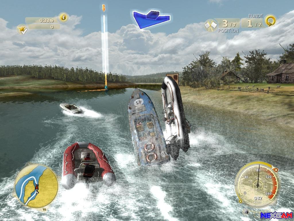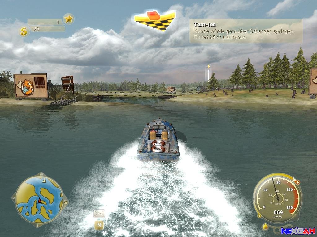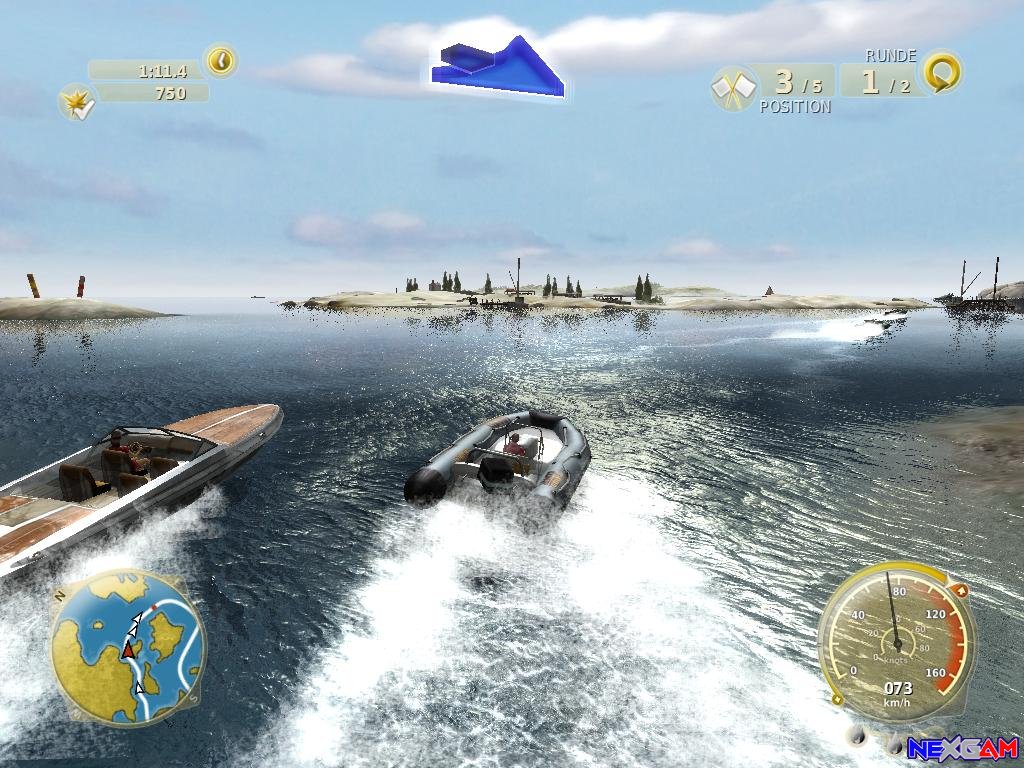 Ich weiß jetzt was ihr denken werdet: ’’ Spritzige Wettrennen mit Booten? Wie uncool ist das denn bitte?!’’ Diese Gedanken gingen mir auch beim installieren von Aquadelic GT durch den Kopf - doch meine Meinung änderte sich recht schnell, nachdem ich für einen Proberitt Russlands Küsten unsicher gemacht habe. Sobald ihr euch durch die dürftigen Menüs geklickt und endlich das Boot zu Wasser gelassen habt, dürft ihr euchan den höchst detaillierten Wasserdarstellungen satt sehen, wobei erst mit dem im Menü einzuschaltenden Bloom-Effekt die ganze Pracht zu genießen ist. Ab da werdet ihr genau wie ich Minuten verbringen und nur durch die Gegend zu fahren um die tollen Wasserspieglungen zu bewundern. Der Singleplayermodus hat wie Need for Speed Most Wanted eine offene Welt, bei der ihr mit eurem Motorboot durch Küstengebiete fahrt und an Hotspots wichtige Rennen bestreitet. Diese werdet ihr anfangs aber nicht gewinnen, weil euer Karren einfach mit der Konkurrenz nicht mithalten kann. Also steht für die ersten Spielminuten der Taxiservice und das Schätze suchen auf dem Programm, um ein bisschen das virtuelle Konto aufzufüllen. Wenn ihr dann geldmäßig zu den oberen Zehntausend gehört, solltet ihr entweder im Tuningsshop euren Schlitten aufmotzen oder einfach ein neues Boot kaufen.