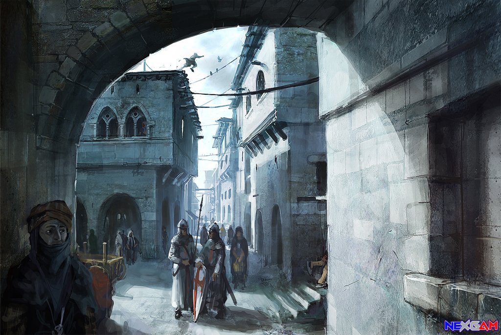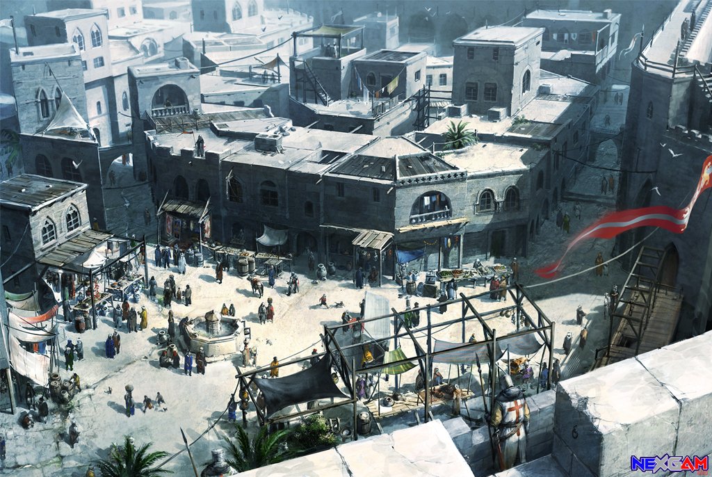 Solltet ihr zu Anfang noch mit dem Pferd unterwegs sein, besteht die erste Aufgabe darin in die Mega-Metropolen Jerusalem oder Damaskus zu gelangen, was bei den scharfsinnigen Wachen schon manchmal zu kleinen kreativen Ideen führt. Habt ihr das Haupttor passiert und nicht viel Aufsehen erregt, solltet ihr zuerst euren Kontaktmann ausfindig machen, welcher euch Details zu eurem Zielobjekt versorgt. Recht informativ sind diese Gespräche nicht, deswegen solltet ihr nach dem Smalltalk mit dem Kontaktmann die Checkpoints auf dem Radar abklappern, um nähere Information über euer Ziel zu erfahren. Hierzu ist es die beste Bewegungsart einfach über die Dächer der Metropolen zu huschen, da ihr hier nicht von zu vielen Wachen beobachtet werdet. Nebenbei erwähnt macht das auch viel mehr Spaß, als wenn ihr wie ein „Softie“ durch die Straßen und über Marktplätze schlurft. Um eure Karte im Optionsmenü zu aktualisieren werdet ihr immer wieder gezwungen sein bestimmte Türme zu erklimmen, um alle Nebenmissionen und Ziele zu synchronisieren.