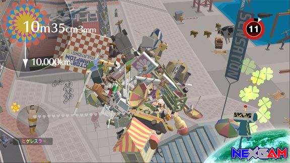Ihr merkt schon, die Story ist genauso abgedreht wie wir es von der Reihe kennen und lieben. Passt ja auch ausgezeichnet zum Gameplay, von dem man, ohne weiteres, selbiges behaupten kann. Für alle die noch nie ein Teil gespielt haben, eine kurze Erklärung dazu: Ein Katamari ist praktisch ein Knäul, welches sich aus allen möglichen und unmöglichen Dingen zusammensetzt. Selbige fangen von alltäglichen Dingen wie Lollis, Plätzchen und Katzen an, gehen über Bäume, Autos, Menschen und Schiffe bis hin zu Hochhäusern, Dinos und ganzen Planeten. Es gibt insgesamt 1.120 Gegenstände die man sich so einverleiben kann.
