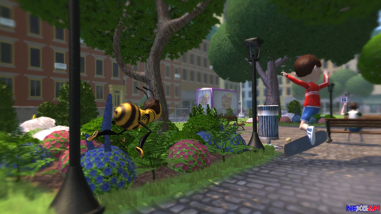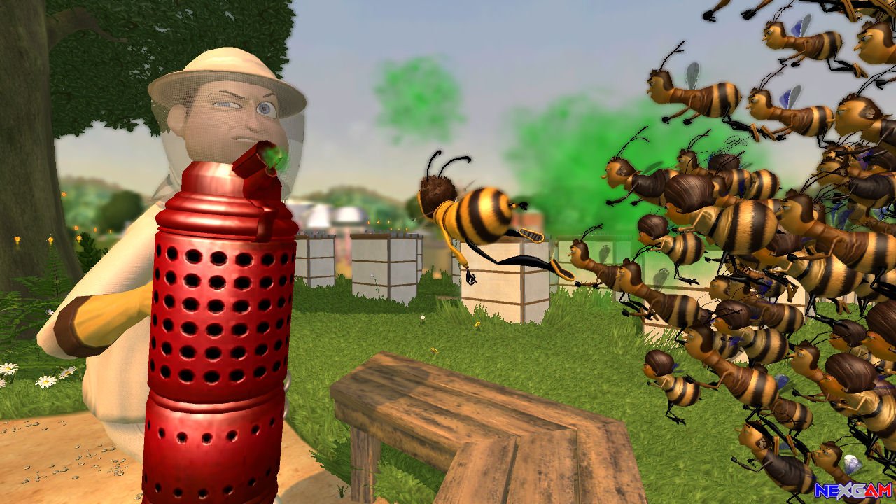 Im Spiel übernehmt ihr die Rolle von Barry B. Benson, der seinen ersten Arbeitstag bei der Honex, einem Honighersteller hat. Der Hauptteil von Bee Movie spielt sich im Bienenstock ab, der nach dem Sandbox System aufgebaut ist, bekannt aus GTA oder Saints Row. So bewegt ihr euch frei durch die Stadt, bzw. dem Stock, auf der Suche nach neuen Missionen. Dabei könnt ihr sowohl zu Fuß unterwegs sein, oder euch wie im großen Vorbild eines Autos bedienen. Ja, richtig gelesen, in Bee Movie bewegen sich Bienen nicht nur auf Beinen und via Flügeln voran, sondern auch mit dem Auto. So könnt ihr im Auto diverse Missionen erledigen. Entweder ihr versucht euch als Taxifahrer und bringt ungeduldige Passagiere von A nach B, oder ihr fahrt einige Straßenrennen. Für erfolgreiche Missionen winken Punkte, die in neue Kleidung, oder auch neue Autos investiert werden können. Ebenfalls ist es möglich sich seine Kasse bei Honex aufzubessern, indem ihr einfache, als „Arbeit“ getarnte, Minispiele spielt. Dort gilt es mittels eines Glases Honigwaben einzusammeln, die herunter fallen, oder Gläser aufzurichten.