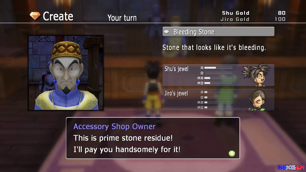 Bis auf einige Zubehörgegenstände, wie Armreif, Ohrringe, Halskette und Ringe usw. gibt es sonst keine weiteren Ausrüstungsgegenstände, die ihr euren Charakteren anlegen könnt. Neue Items lassen sich in Schatztruhen , überall in den Tiefen des Dungeons oder an bestimmten Stellen auffinden. Aber auch in den Städten könnt ihr euer gefundenes Gold in neue Gegenstände umsetzten und bei Bedarf mit den Leuten quatschen. Die meisten von ihnen geben euch einen kleinen Nebenquest mit auf den Weg, der aber in der Regel mit eurer Hauptaufgabe verbunden ist. So müsst ihr z.B. ein Heilmittel für das Devee-Volk, das von einer urplötzlichen Krankheit befallen wurde, finden, ein Buch für ein Wandgemälde auftreiben oder eine verschwundene Person wieder finden. Allerdings müsst ihr aber nie dafür andere Orte abseits der Story dafür aufsuchen. Frust sucht man bei Sakaguchi’s Rollenspiel – dem Gott sei Dank- vergeblich. Der Schwierigkeitsgrad der Kämpfe siedelt sich relativ im normalen Bereich an und auch die Zwischenendgegner erweisen sich als übermäßig moderat. Das verdankt man nicht nur den großzügig verteilten Speicherpunkten, die am Anfang von Dungeons oder am Ende von längeren Passagen auffindbar sind. Richtige Rollenspielprofis mögen sich vielleicht ein wenig unterfordert fühlen, alle anderen können sich aber entspannt zurücklehnen und die Story bzw. das Spiel genießen.