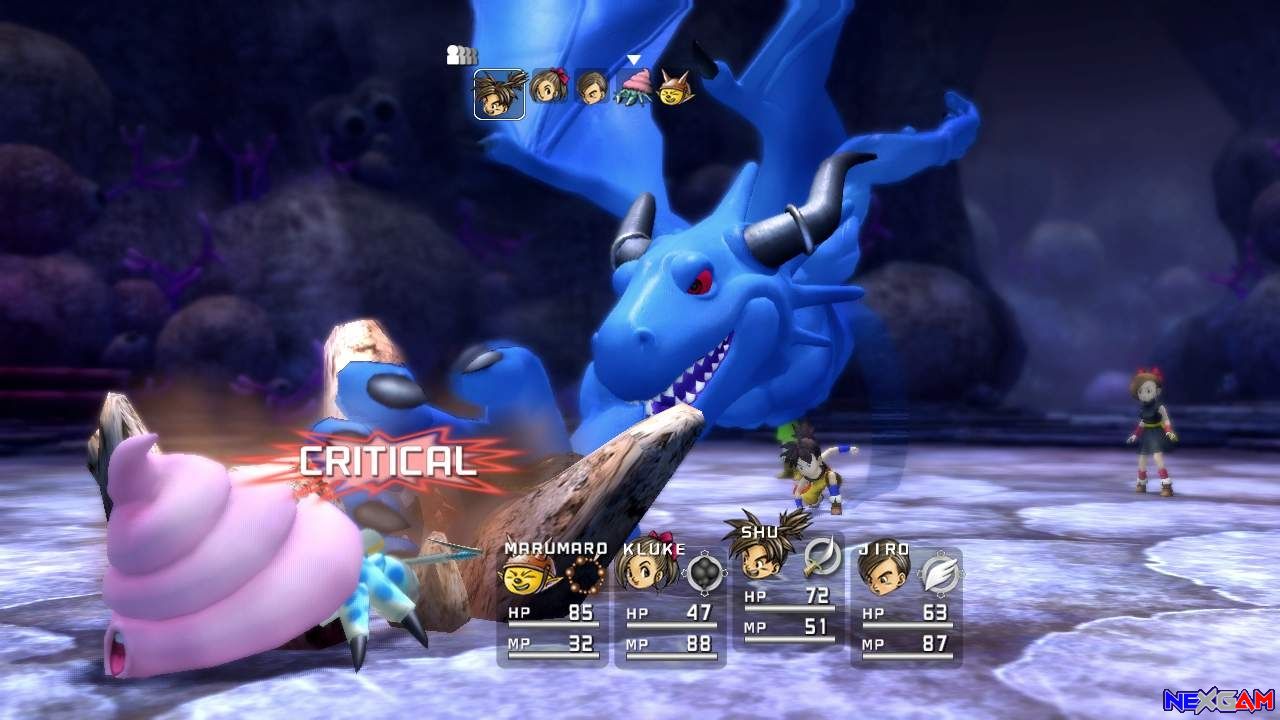 Das heißt, dass die Kreaturen sich untereinander an die Gurgel gehen und sich selbst schwächen oder sogar ganz besiegen. Bei einem Kampf mit mehreren Runden habt ihr die Möglichkeit per „A“-Taste einen Zusatzboni, wie TP, MP, Treffsicherheit oder physische Stärke wiederherzustellen bzw. zu verbessern. Auch der Aktionsbildschirm während des Kampfs ist recht typisch gehalten. Hier könnt ihr zwischen einem normalen bzw. magischen Angriff oder einem Zauber wählen. Des weiteren könnt ihr Gegenstände auswählen, eure Verteidigung stärken oder die gute, alte Flucht Funktion nutzen. Eine Leiste am oberen Bildschirmrand zeigt euch genau an, welcher eurer Mitstreiter bzw. Gegner als nächster an der Reihe ist. Beim Kampf gelten natürlich die altbekannten Elementarregeln. Feuer fürchtet Wasser und magische Gegner haben eine eklatante schwäche gegen prachtvolle Prankenhiebe.