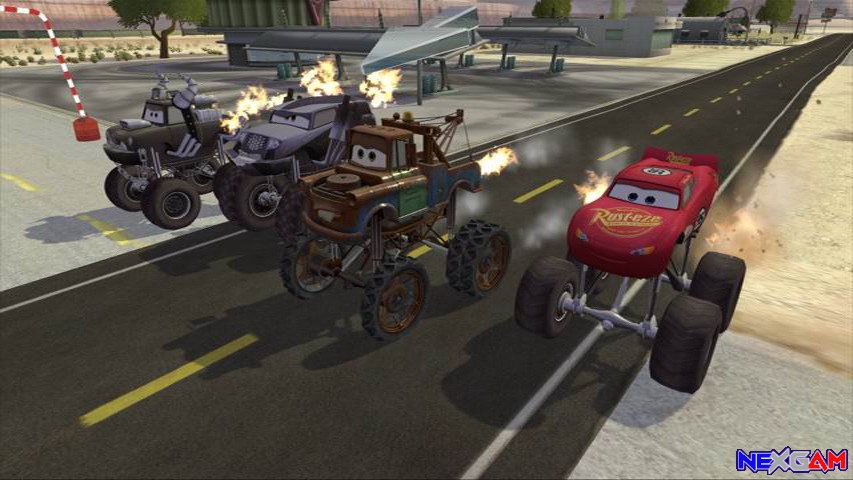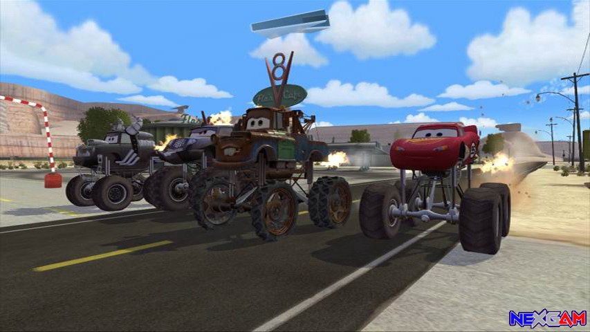 Bevor es zum Rennen kommt, könnt ihr euch frei mit Lightning durch die Stadt und die Umgebung bewegen und die einzelnen Pfade erkunden. Anfangs ist nur "Radiator Springs" verfügbar, doch mit fortschreitender Spieldauer kommen mit "Ornament Valley" und "Taflin Pass" weitere Gebiete dazu. Die Rennen und Veranstaltungen erscheinen als Symbole vor euch. Fahrt ihr sie an, könnt ihr sie starten. Dazu können in den Umgebungen zahlreiche Lackierungen und andere Zusätze gefunden werden. Neben den normalen Rennen gibt es 20 verschiedene Minispiele/Rennwettbewerbe, wie beispielsweise das Staffelrennen. In diesem habt ihr einen Partner, der mit euch wechselt, sobald eine Runde absolviert ist. Ebenfalls integriert ist eine Art "Dancing Stage"-mäßiges Minispiel, indem ihr mit den Schultertasten den Fahrer Ramone rhythmisch zum Takt der Musik hüpfen lassen müsst. Eine der herausragendsten Rennvarianten ist das Monstertruck-Rennen, dass sich freischaltet sobald ihr im Story-Modus die benötigten Teile gefunden habt. Hierbei geben sich auch zwei alte bekannte aus dem Kinohit "Die Monster AG" ein Stelldichein.
