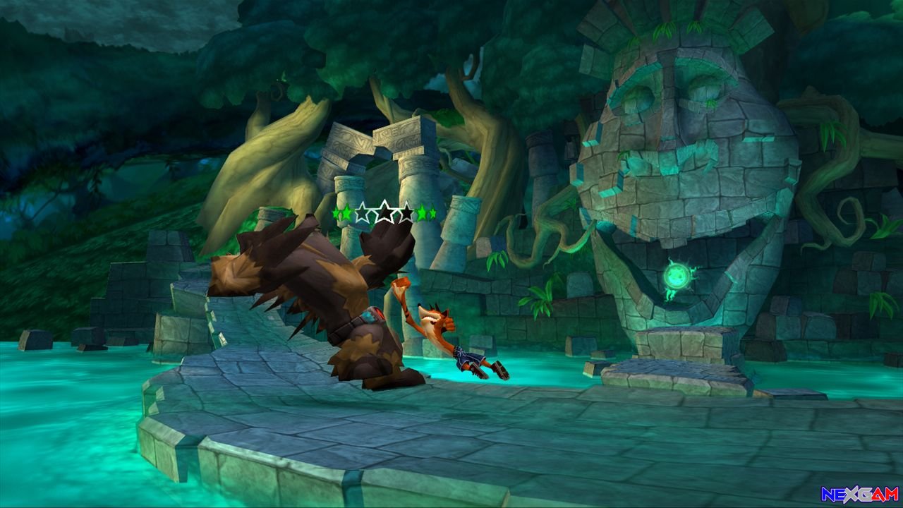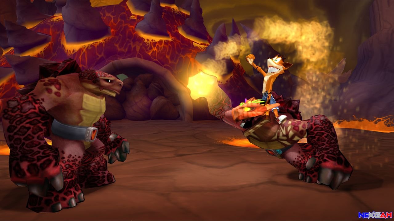 Der Hauptfokus von Crash of the Titans liegt jedoch ganz klar auf den Kampfsequenzen, die in jedem der einzelnen Level mehrfach vorkommen und euch für gewöhnlich vor große Gruppen von Gegnern stellen. Sämtliche bösen Jungs müssen ausgeschaltet werden, bevor ihr voranschreiten könnt. Beseitigte Gegner und zerstörte Kisten hinterlassen „Mojo Orbs“, die Crash einsammelt und dadurch im Laufe des Spiels Upgrades und neue Moves bzw. Angriffkombos erhält. Was Crash of the Titans besonders macht ist Crashs Fähigkeit, größere Gegner (die im Titel genannten Titanen) regelrecht zu übernehmen. Dazu müsst ihr jene zunächst durch Kombos bewusstlos schlagen oder treten und anschließend den B-Button drücken, damit Crash auf die Schulter des Titan springt und ihr die Kontrolle über ihn an euch reissen könnt. Sobald ihr die Rolle des Monsters übernommen habt können spezifische Spezialattacken ausgeführt werden, die manchmal nötig sind, um ein Level erfolgreich fortzuführen. Bei den Monstern gibt es eine gute Portion Abwechslung und so stellt ihr bald fest, in welcher Reihenfolge ihr die Jungs übernehmen solltet, insofern mehrere Gattungen gleichzeitig auf dem Bildschirm auftauchen.