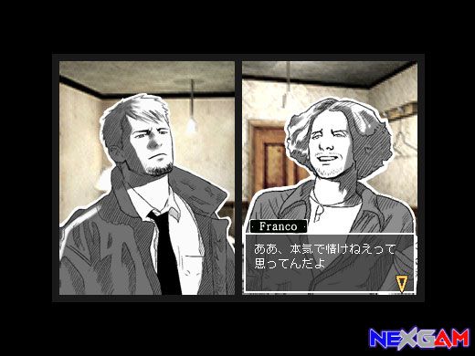Ähnlich funktioniert es mit Gesprächen in Hotel Dusk. Insofern sich eine Person in eurer Nähe befindet, leuchtet das Gesprächsicon am unteren Bildschirmrand auf. Ein Klick mit dem Stylus genügt um den Dialog zu starten. Die Gespräche mit anderen Hotelgästen oder Angestellten stellen den Großteil der Spielzeit dar, denn jeder der Anwesenden hat das ein oder andere Geheimnis, welches langsam aber sicher von euch enthüllt werden soll. Während die Gespräche durchaus gut gemacht sind und auch Raum für den ein oder anderen Wortwitz lassen, sind sie hin und wieder doch ein wenig zu lang geraten, worunter der Spielfluss stellenweise leidet. Im Verlauf eines Gesprächs ist es möglich, dass durch das Gesagte neue Fragen aufkommen, die ihr den Gesprächspartnern im Nachhinein stellen könnt. Zudem erscheint nach bestimmten Aussagen, die euer Interesse wecken, ein Icon auf dem Touchscreen. Durch einen Klick auf jenes Icon wird Kyle Hyde den eigentlichen Dialog unterbrechen und das soeben angesprochene Thema vertiefen wollen. Aber Vorsicht: nicht jeder mag eure Hartnäckigkeit. Wenn ihr nicht aufpasst und zuviel ausplaudert, bzw. einer Person Informationen zukommen lasst, die man ihr eigentlich nicht anvertrauen sollte, kann das zum vorschnellen Ende des Spiels führen. Deshalb ist es ratsam, den Spielstand oft abzuspeichern, was zu jeder Zeit über das Menü möglich ist.