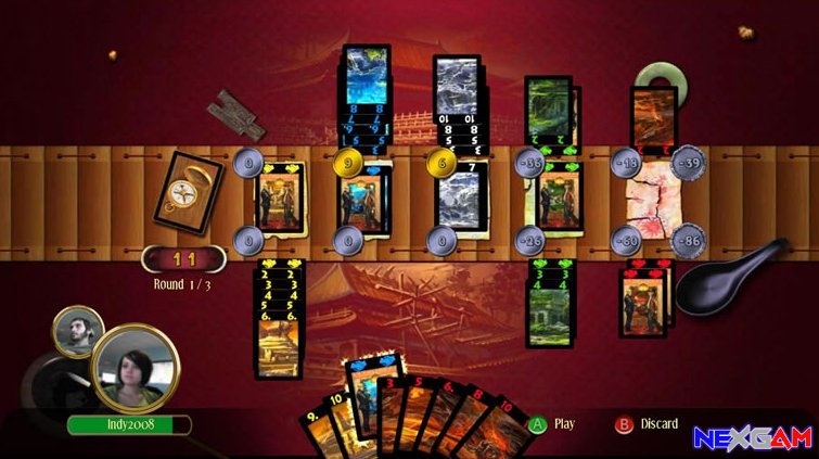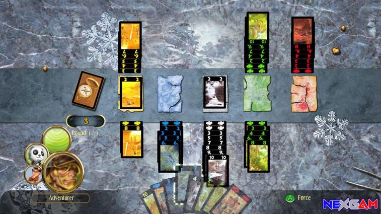 Aber lasst mich zurück zu den Anlegepunkte kommen. Sie stellen so genannte Expeditionen dar, selbige können wir nun durch das einfache Anlegen einer Karte starten. Wobei es nicht sinnvoll ist, einfach auf gut Glück alle auf einmal zu beginnen, muss man doch in jede Expedition erst einmal investieren, nämlich stolze zwanzig Punkte. Selbige muss man danach erst einmal wieder durch die Punktekarten zurück bekommen. Das fiese ist dabei, dass man die Karten nur aufsteigend anlegen kann, will heißen, hat man schon die Zehn gelegt, war es das für die Expedition und man kann die restlichen Karten der Farbe vergessen. Schafft man es aber, mindestens acht Karten einer Farbe anzulegen, bekommt man einen Bonus von 20 Punkten.