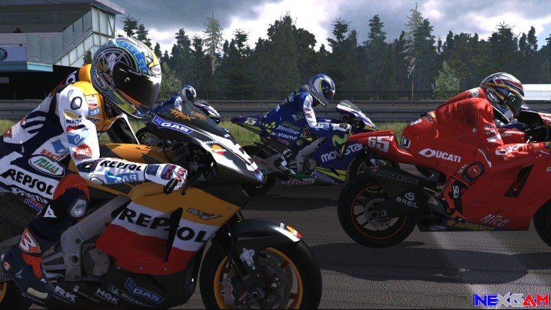 Die Grafik ist den Entwicklern richtig gut gelungen und wartet mit hochauflösenden Texturen, sowie prächtigen Boliden auf. Die Grafikmuskeln lässt der Titel, wie bereits am Anfang des Textes zu entnehmen, erst im Acarde-Modus spielen. Hier entfaltet sich die wahre Pracht des Spiels und zeigt schöne Streckenranddetails, sowie sehr ansehnliche Lichteffekte. Wenn ihr zum Beispiel bei bewölktem Wetter fahrt, kann es vorkommen, dass sich im Verlauf des Rennens sich die Wolken lichten und vereinzelt Sonnenstrahlen durchkommen. Das sieht nicht nur nett aus, sondern erschwert euch durch die wechselnden Lichtverhältnisse deutlich die Sicht auf die Fahrbahn. Das Spiel läuft dabei erstaunlicherweise fast immer mit 60 Frames, egal wie viele Fahrer sich gleichzeitig auf dem Schirm befinden, leider aber nur fast. Denn Climax hat es wieder nicht geschafft die typischen Moto GP Ruckler zu beseitigen. So kann es willkürlich passieren, dass die Framrate einbricht. Mittlerweile ist ein winziges Update veröffentlicht worden, das dieses Problem weitgehend behebt. Warum nicht gleich so?
