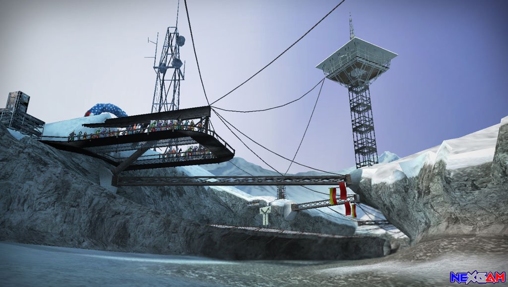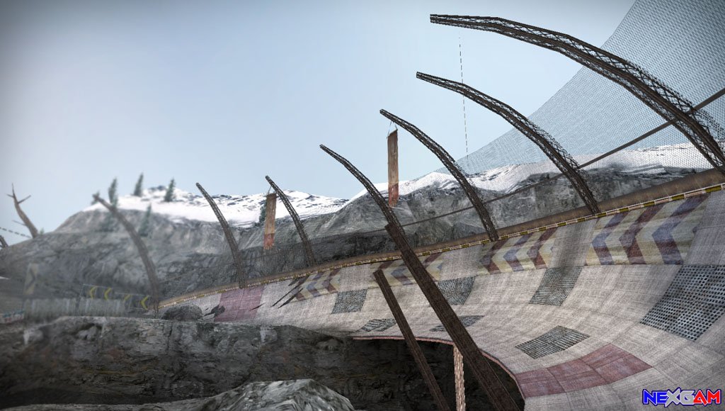 Mit der eingebauten Screenshotfunktion können die Stunts aus unterschiedlichsten Blickwinkeln festgehalten werden und als Beweis eurer tollkühnen Rennaction dienen. Das lohnt sich auch, da die Grafik ein wirklicher Augenschmaus ist. Hier spielen die Macher mit aufwendig gestalteter Alaskakulisse gepaart mit blendendem Linsenlichtreflex der Sonne. Sowohl Umgebung als auch Kontrahenten besitzen einen hohen Detailgrad, sodass man sich über das sehr flüssige Gameplay bei neun CPU-Gegnern wundern kann – kaum ein Ruckeln war zu bemerken. Ebenso sorgen hinterlassene Fahrspuren im Boden, Schlammspritzer am Display, Zuschauertribühnen, Wimpel und eine enorme Weitsicht für spektakuläre Authentizität des Geschehens. 20 hardrocklastige Songs untermalen die Rennen, wer das Genre nicht mag, kann auch seine private Musik-Sammlung im Hintergrund laufen lassen.
