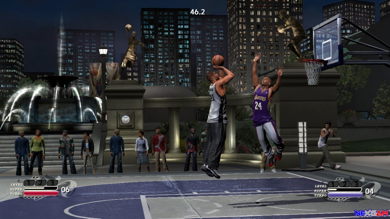 Obwohl die sechs Episoden unter diverse „Themen“ gestellt werden, unterscheiden sie sich nicht wirklich großartig voneinander. Meist geht in 1on1 Spielen gegen einen NBA Star – euer Ziel hierbei ist selbstverständlich der Sieg. Kleinere Regeländerungen wie z.B. die Wertsteigerung eines Dunks auf drei Punkte, die Pflicht das Spiel mit einem bestimmten Special Move zu beenden oder das Spiel erst bei 21 statt bei 11 Punkten enden zu lassen sorgen für ein Mindestmaß an Abwechslung. Aber ist eine große Story überhaupt nötig bei einem Arcade Basketballspiel? Wer sich solch ein Spiel kauft will für gewöhnlich die besten und bekanntesten Spieler, total übertriebene Dunks, harte Fouls, coole Locations und ein spaßiges Gameplay. In den meisten Punkten kann NBA Ballers: Chosen One zumindest theoretisch befriedigen. So sind z.B. über 80 aktuelle NBA Spieler auf der Disc zu finden. Hinzu kommen Legenden wie Larry Bird, Magic oder Moses Malone. Auch die Courts, die eine kleine Zahl von interessanten Locations wie z.B. Flugzeughangar, eine Penthouse Suite in Boston oder chinesisches Gebirge abdecken, enttäuschen nicht sonderlich. Abgefahrene Dunks sind auch am Start, Kombinationsspiel mit Zuschauern lässt geniale Alley-Oops Wirklichkeit werden.