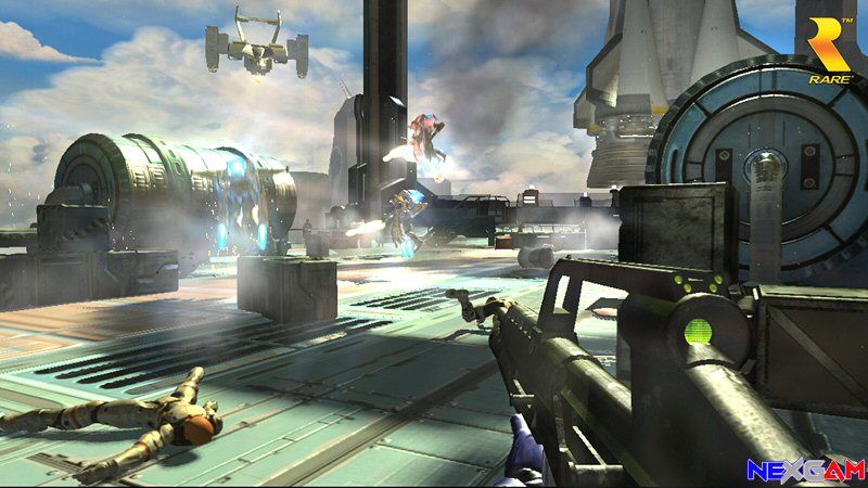 Eure erste Mission führt Euch nun in eine komplexe Anlage, in der Ihr etwas ausspionieren sollt. Mein erster Gedanke beim angucken der Umgebung wanderte hier Richtung „HALO“. Im Prinzip handelt es sich hierbei um einen Tutorial Level, in denen Ihr die grundlegende Steuerung von Joanna eingeführt werdet. Neben den Bewegungen bekommt Ihr hier auch die ersten netten Geräte erklärt, die Euch so manche Tür öffnen werden. Nach einer kleinen Wegstrecke dürft Ihr hier dann z.B. eine fliegende Kamera durch kleine Tunnel an Ihr Ziel (einem riesigen Datenkern) bringen, um sie dort dann mit einem „machtigen Badabum“ explodieren zu lassen. Leider hat das zur Folge, daß etliche „Spinnen-Bots“ nun außer Kontrolle sind und diese Euren Weg in die Freiheit blockieren möchten. Schafft Ihr es bis an die Oberfläche und erledigt dort noch die menschlichen Gegner, welche teils in fliegenden Jetpacks auf Euch lauern, erfahrt Ihr, daß es sich hierbei nur um eine Simulation handelt, die Euer Können trainieren soll. Es beginnt nun also die eigentliche Story des Spiels.