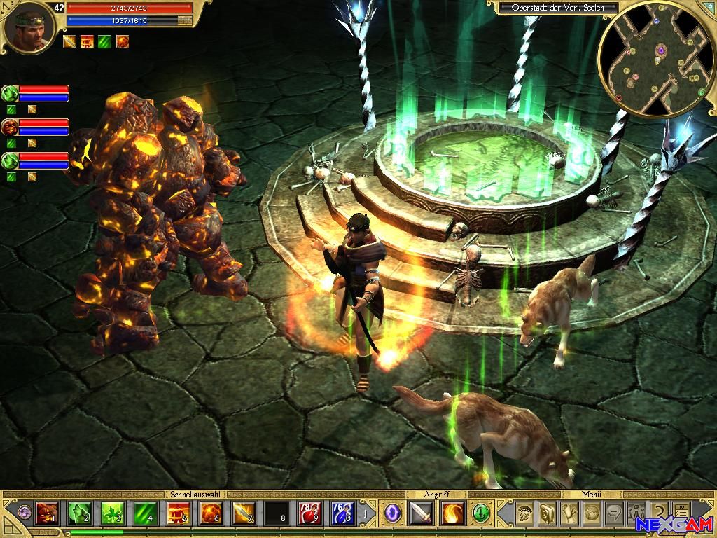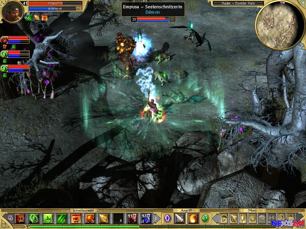 Irgendwas ist faul im Staate Griechenland Teil 2 Das Abenteuer startet auf der beschaulichen Insel Rhodos, wo das Wasser noch klar und die Riesenkrabben noch schmackhaft sind. Zu jener Zeit, wo das erste AddOn zum Action-Rollenspiel Titan Quest angesiedelt ist, wurde die 78km lange Insel noch nicht vom Tourismus in Besitz genommen, was viele Vorteile mit sich bringt. Zum einen liegen überall wertvolle Schätze herum, die der Spieler sprichwörtlich nur aufheben muss. Aber bei einer simplen Schatzsuche bleibt das vierte Kapitel wahrlich nicht. In der bekannten Formel, die Diablo so berühmt gemacht hat, durchreist ihr vier neue Gebiete, die grafisch einen ganz neuen Style in der Welt von Titan Quest beschreiten. Glänzt Rhodos vorher noch mit beschaulichen Stränden und wilder Vegetation, ändert sich die romantische Atmosphäre, sobald ihr den Hades besucht, wo wandelnde Tote sprichwörtlich umherlaufen. Brian Sullivan, einer der Mitbegründer der Ensemble Studios (Age of Empire-Reihe) blieb erneut dem Mainstream treu und schickt, wie andere Firmen es vorgemacht haben, ein routiniertes Erweiterungsprogramm, was viele neue Quests und Items mit sich bringt.