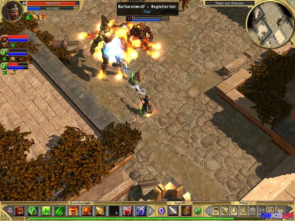Auch am Balancing wurden Veränderungen vorgenommen, die sich leider als Erstes auf die Begleiter widerspiegeln. Waren die treuen Gefährten vorher noch eine undurchdringliche Wand für alle Monsterhorden, beißen sie jetzt zu oft ins Gras und ihre Fähigkeiten wurden drastisch runtergestuft. Die künstliche Intelligenz der Monster wurde generalüberholt, was auch dringend von Nöten war, weil im Hauptprogramm zuerst immer der erste Charakter angegriffen wurde, der in ihren Sichtkegel erschien. Die wirklichen Highlights sind wieder Mal die Kämpfe mit den meterhohen Titanen, die dank kleiner Anpassungen jetzt abwechslungsreicher gestaltet sind. Am Totenfluss Styx trifft man unweigerlich auf den Fährmann, den ihr natürlich überrumpeln müsst. Der Kampf wird auf einer unfertigen Brücke ausgetragen, die viele Löcher beherbergt. Um der Situation Herr zu werden, müsst ihr den Zauberwellen von Charon ausweichen und dabei aufpassen, dass euch die Wassersäulen nicht treffen, die durch die Löcher am Boden sprudeln. Mit ein bisschen Taktik und Geduld ist aber auch diese harte Nuss zu knacken!