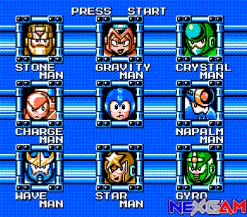 Mega Man Veteranen finden sich auch im neuesten Ableger der Endlosreihe schnell zu recht, weil sich am grundlegenden Spielprinzip eigentlich nichts verändert hat. Im Auswahlbildschirm könnt ihr einen der acht Endgegner (Charge Man, Crystal Man, Gravity Man, Gyro Man, Napalm Man, Star Man, Stone Man, Wave Man) auswählen, worauf ihr dann sofort in dessen Level gebeamt werdet. Thematisch passen die Stages jeweils zu den Fähigkeiten des Endgegners und in bewährter Mega Man Tradition springt, lauft, schießt und rutscht ihr durch die doch sehr anspruchsvollen Stages und nehmt auf eurem Weg zu besagtem Endgegner den typischen Altmüll mit.