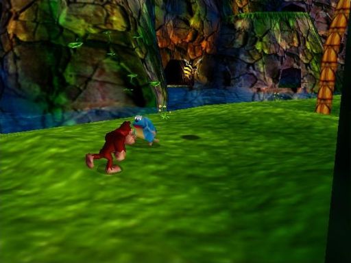 Über das Gameplay gab es im Vorfeld große Diskussionen. Vielen Leuten passte der Sprung in die 3. Dimension nicht, da sich dadurch das Spielprinzip geändert hätte. Aus einem Spring und Rennspiel sei ein Such und Sammelspiel geworden. Vorweg: Diese Argumentation ist in meinen Augen nur zum Teil richtig. Es ist wahr, dass sich das Spielprinzip deutlich geändert hat, und vielleicht verdient dieses Spiel auch als Genrebezeichnung den Begriff „Search and Collect“. Doch dies muss ja kein Nachteil sein und wer die DK Teile auf dem Super Nintendo kennt, der weiß, dass es auch dort einiges zu finden gab. Trotzdem, Donkey Kong 64 ist nicht geradlinig und man muss sich Zeit nehmen, um in das Spiel einzusteigen. Ist man aber einmal drin, legt man den Controller nicht so leicht aus der Hand. Ein großer Pluspunkt des Spiels.