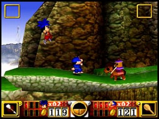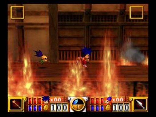 In den Städten könnt ihr aber nicht nur euren Proviantbeutel aufstocken und den Charakter wechseln, ihr könnt sogar Side Quest annehmen, indem ihr mit den Bewohnern sprecht. So müsst ihr beispielsweise einem Charakter seine Musikinstumente zurück bringen, die in einem Level verstreut sind. Aber nicht nur das. Zusätzlich läuft noch ein Timer, der euch das Leben schwerer machen soll. Apropos schwer: der Schwierigkeitsgrad bei Mystical Ninja 2 ist nicht von schlechten Eltern. Teilweise müsst ihr die Level mehrmals beginnen, um heil ans Levelende zu gelangen. Dazu kommt, dass das Spiel über einen Tag-Nacht-Wechsel verfügt. So begegnet ihr nachts stärkeren Monstern, die aber auch mehr Geld und Erfahrungspunkte liegen lassen. Langeweile kommt definitiv keine auf.