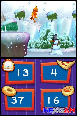 Schon auf dem GBA haben die Jungs von Shin’en schöne Grafiken auf den Bildschirm gezaubert und beim DS läuft das nicht anders. Die seitlich scrollenden 3D Level sind zwar nicht sehr effektreich, allerdings läuft alles flüssig und es gibt viele schöne Details fürs Auge. Sämtliche Action im Spiel findet auf dem oberen Bildschirm des DS statt, der Touch Screen dient lediglich zur Übersicht über eingesammelte Items. In Sachen Musik sticht Garfield’s Nightmare nicht großartig hervor und die Melodien wiederholen sich mitunter zu oft.
