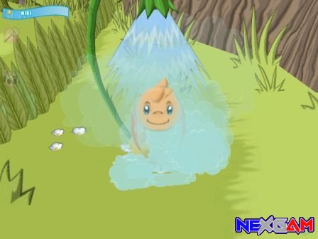 Im oberen Bildschirm könnt ihr an einer grafischen Anzeige nun sehen, was euer Fluftie gerade braucht, denn der Kleine will spielen, essen und trinken. Zudem muß er auch noch zur Toilette und meistens braucht er danach eine Dusche. Die dargestellten kleinen Wolken zeigen anhand ihrer Farbe und Anzahl wie schnell man sich um das Einzelne Bedürfnis kümmern muß. Hat unser Schützling hier beispielsweise gar keine grünen Wolken mehr in einer Reihe wird er sofort krank. Durch berühren des Touchscreen erteilt man seinem Fluftie Befehle um ihn zum gewünschten Ziel zu bringen. Bereits hier merkt man schon erste Mankos, denn die Fortbewegung mit dem Schützling ist im Grunde schon ein kleiner Nervenakt, da es sehr langsam von Statten geht und der Fluftie auch oftmals an „Ecken“ hängen bleibt.
