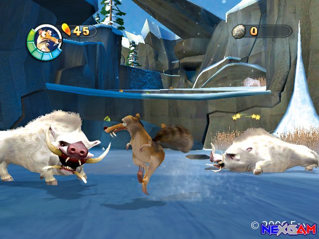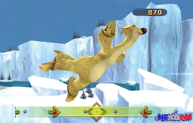 Neben dem Sammeln und Kämpfen wartet die Schillerscheibe aber auch noch mit einigen Mini-Spielchen auf, die geschickt in die Story (übrigens dem Film nachempfunden) eingewoben sind. Zum Beispiel müsst ihr hinter dem Rücken des Säbelzahntigers Diego Nüsse sammeln und euch, falls dieser sich überraschend umdreht (was er selbstverständlich tun wird), tot stellen. Jedenfalls merkt man wie Entwickler Eurocom sich doch sichtlich Mühe gab seinem Baby genügend Abwechslungsreichtum mit auf den Weg zu geben und trotz der Thematik findet man sich während des Abenteuers daher auch schon mal z. B. im Bauch eines Fisches wieder oder man lässt die Bowlingkugel im Wettstreit um eine besondere Eichel rollen.
