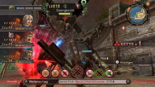 Aber das ist noch lang nicht alles. Müsst ihr einem Mechon in den Allerwertesten treten, solltet ihr das Kampsystem bis dahin verinnerlicht haben, denn so einfach lassen sich die Blechhaufen nicht besiegen. Hier müsst ihr eine ganz bestimmte Taktik anwenden: ihr müsst sie erst ins Schwanken bringen. Habt ihr das geschafft, kommen die Mechon aus dem Gleichgewicht, fallen um und nehmen deutlich mehr Schaden. Im Spielverlauf lernt ihr immer neue Taktiken dazu und müsst auch immer mehr Sachen achten, sodass das Kampfsystem eine Kust für sich ist und man nur darüber ein ganzes Special schreiben könnte. Wer aber am Ball bleibt, bekommt es zwar mit recht fordernden Kämpfen zu tun, diese machen aber soviel Spaß, dass man das Kampfsystem gar nicht mehr missen will.