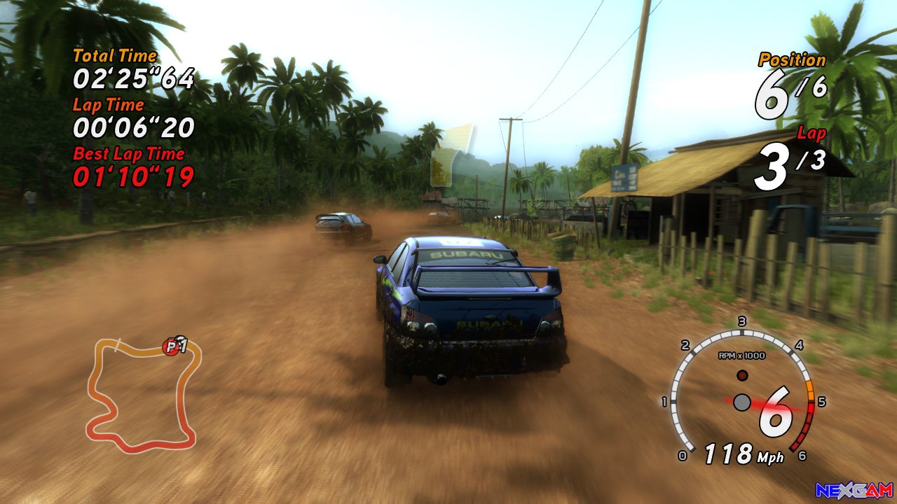 Wer jetzt glaubt, dass sich jeder Rennbolide wie ein Zug auf Schienen durch die Kurven steuern lässt, wird schnell selbst herausfinden, dass dem nicht so ist. Der Subaru Impreza hat von Werk aus ein etwas lockeres Setting, wobei Drifts in Kurven effektiver sind als z.B. beim VW Golf GTI. Apropros Drifts: Die sind immer noch, wie schon seit Anfang der Serie, ein echtes Kunststück, was nicht zuletzt durch die neuen Bodendeformationen noch mehr Fahrkunst vom Spieler verlangt. Hier ist das perfekte Balacing mit Gas und Bremse ein Muss, um zum Beispiel Haarnadelkurven zu meistern. Kinder, die ihre Zeit mehr in der Spielhalle verbrachten, als vor den Hausaufgaben, werden jetzt mit der Zunge schnalzen. Es fällt schwer, während der rasanten Rennen einen Blick für die Gegner zu haben, weil die Streckenobjekte am Rand zum Hinschauen einladen. In Afrika durchfahrt ihr Dörfer mit Einheimischen oder eine Gruppe Elefanten grüßt euch, sobald ihr sie passiert habt. In der Arktis wabern die Nordlichter am Himmelszelt und Schneemobile versuchen am Streckenrand mit euch mitzuhalten. Das wird alles durch hochauflösende Texturen gekonnt in Szene gesetzt. Der Detailreichtum macht selbst bei den Autos nicht halt, wobei die Schmutzeffekte fast schon fotorealistisch wirken. Sind vor dem Rennen die Autos wie frisch aus der Waschstraße, müsst ihr sie schon nach drei Runden mit der Spachtel vom Dreck befreien. Habt ihr während der Fahrt in die Motorhaubenansicht gewechselt, kommt ihr mit den nötigen Hardware-Einstellungen noch in den Genuss von hohen Dreck- bzw. Staubformationen, die euch teilweise eure Sicht rauben. Doch trotz allem liegt die grafische Pracht der Konsolenversionen ein bisschen über dem des PC-Pendants.