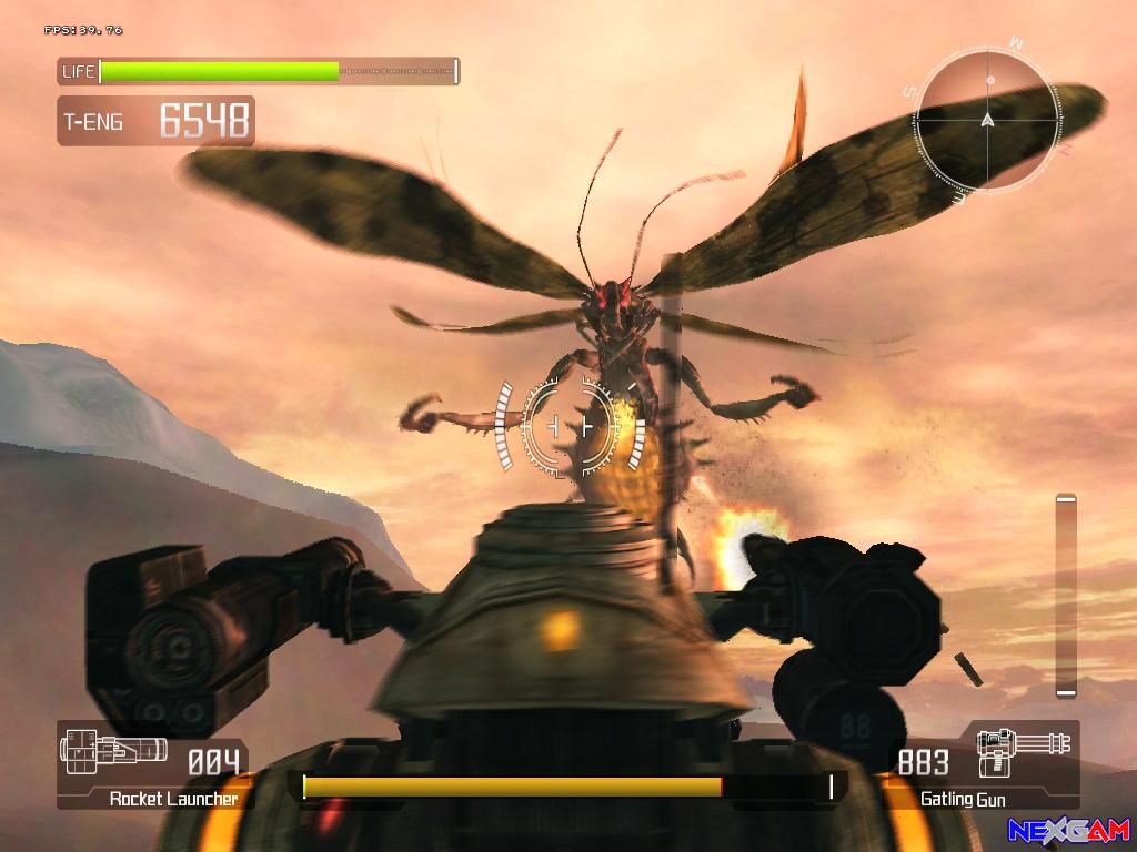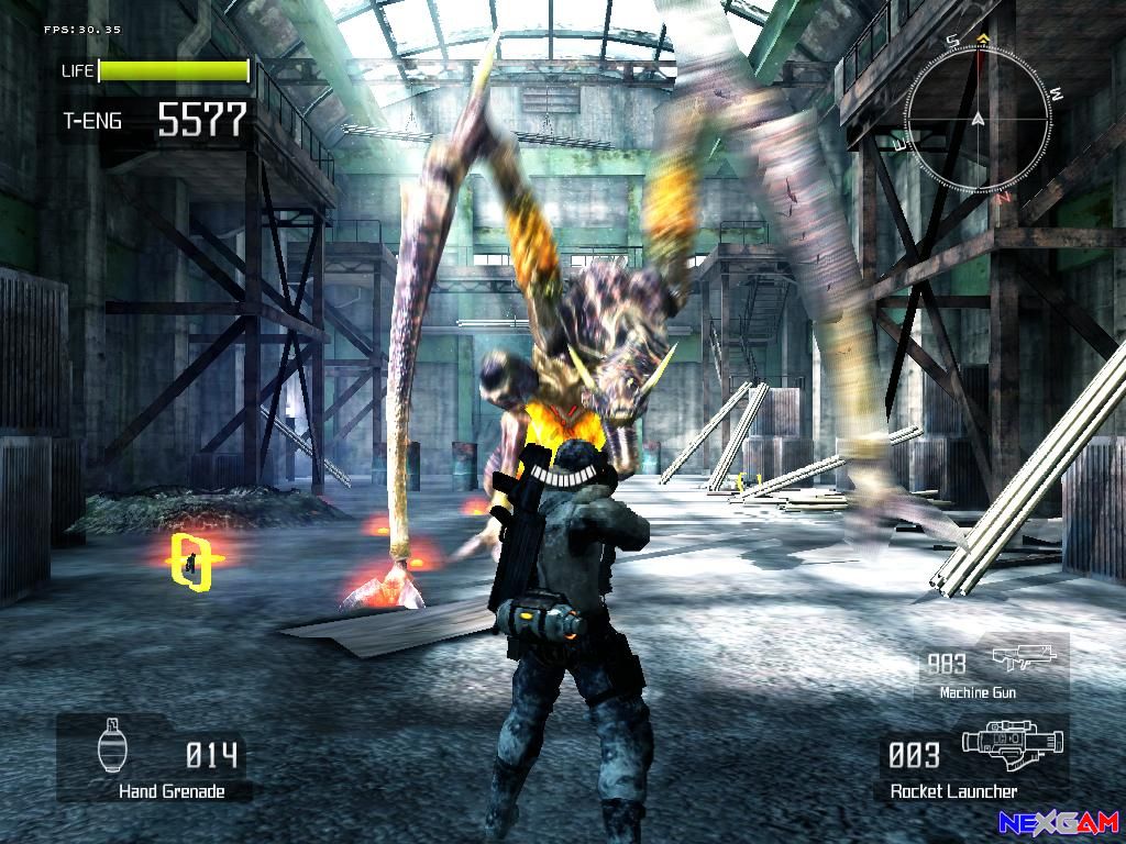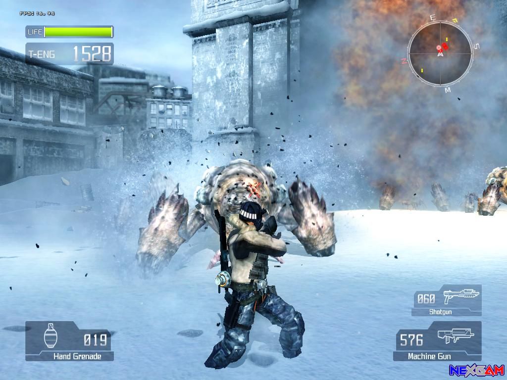 Die kleinen Aufträge, die Wayne von dem Anführer Yuri vermittelt bekommt, sind leider weniger als Routine zu bezeichnen, weil in der klirrende Kälte jede Bewegung eine Qual für den jungen Helden ist, in der der Thermoanzug und der Harmonisierer das Betreten der Außenwelt erst möglich macht. Und hier ist schon der erste clou von Lost Planet: Das Spiel dreht sich hauptsächlich um die Thermalenergie, die ihr meistens bei besiegten Akriden finden werdet. So sind groß angelegte Ausflüge mit einsammeln von Souvenirs nicht angebracht, weil je kälter es wird, umso schneller fällt eure Thermalenergieanzeige. So ist jeder Feindkontakt äußerst willkommen,,, und wenn mal kein Alien in der Nähe ist, solltet ihr entweder Datenstationen ansteuern, alte Autowracks plündern oder kleine Energiecontainer sprengen, die euren Vorrat an Energie wieder auffüllen. Aber ums eins müsst ihr euch keine Sorgen machen, denn Gegner werdet ihr immer finden. Ob es Schneepiraten mit VS oder Akriden sind. Der Actiontisch ist reichlich gedeckt und bietet zum Start der ersten Mission schön brachiale Action pur.