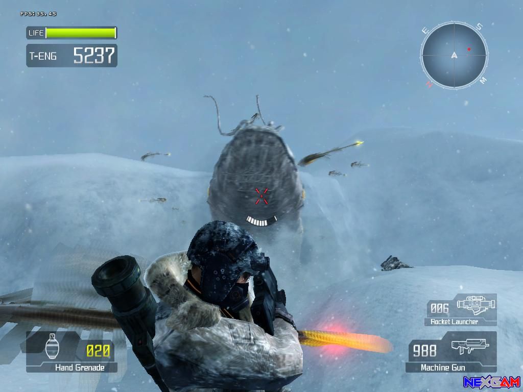 Sobald ihr draußen in der tödlichen Kälte seid, müsst ihr alleine zurecht kommen. Teamkollegen stehen euch leider nicht zur Verfügung. Diese sind auch nicht nötig, weil der Spieler auf eine große Anzahl von Waffen zurückgreifen darf. Maschinengewehr, Schrotflinte oder Plasmagewehr sind bekannte Knarren, die ihre Haltbarkeit in anderen Actiongames unter Beweis stellen konnten. Neben den üblichen Handfeuerwaffen habt ihr die Möglichkeit, die dicken Wummen der VS zu tragen, die euch dann natürlich in eurer Bewegung einschränken. Innerhalb der recht großen Levels werdet ihr öfters unter dem Schnee versteckte Vital Suits finden, die ihr (wenn es eure Thermalenergie zulässt) bemannen könnt. Hier unterscheiden sich die Mechs von ihren Eigenschaften und Größe und können wie die Transformers ihre Gestalt ändern. So wird aus einem eher langsamen Walker ein schneller Schneebuggy oder ein Kettenfahrzeug, das fast einem Panzer nahe kommt.