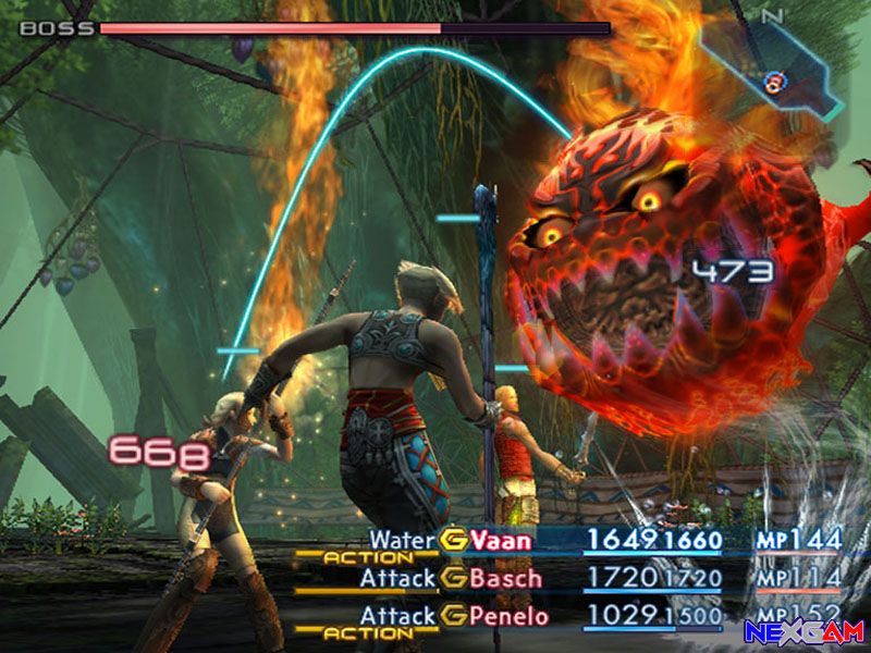 Denn was die zwölfte Episode an storytechnischen Finessen eingebüßt hat, macht sie durch ein innovatives Spielsystem wieder wett. Veteranen kennen das Kampfsystem bereits aus Final Fantasy XI, den meisten Square-Enix-Enthusiasten, die zuvor lediglich FFX (2) gezockt und somit das Online-Experiment übersprungen haben, dürfte sich jedoch eine vollkommen neue Spielerfahrung erschließen. Anstatt wie bei früheren FFs auf mehr oder weniger vordefinierten Pfaden zu wandeln, erschließt sich Euch jetzt eine weitläufige frei erkundbare Welt. Verbrannte Steppen, abgelegene Gebirgspfade und dichte Dschungel wollen erkundschaftet werden, jedes Szenario beeindruckt mit einem individuellen Look & Feel, sowie Eyecandy wie unterschiedlichen Wettereffekten. Zudem bietet jede Flora auch eine eigene Fauna, sprich Gegner: Eure Widersacher stapfen jederzeit sichtbar durch die Tundra, Zufallskämpfe gehören endgültig der Vergangenheit an. Sobald ein Unhold anvisiert ist, lässt sich durch einen beherzten Druck auf die X-Taste jederzeit das wohlbekannte Kampfmenü öffnen, das typische Funktionen umfasst: Angriff, zahllose Magien, Techniken und Items wollen klug gewählt werden. Das Spielgeschehen hält, sobald ihr in den Auswahlmenüs stöbert, an, mit dem rechten Stick lässt sich jederzeit die Perspektive eurem Gusto anpassen. Demnach bietet auch FF12 kein Echtzeit-Gemetzel sondern das klassische Active Time Battle-System im neuen Gewand.