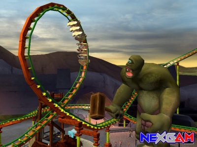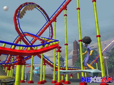 Selfmade-Achterbahnen nehmen noch immer eine gewichtige Rolle im Spiel ein. Bastelt sie direkt im Park oder konstruiert sie separat, um sie anschließend abzuspeichern und auf Knopfdruck auf einer freien Fläche platzieren zu können. Der Bau-Modus wurde lediglich mit kosmetischen Änderungen vom großen PC-Bruder übernommen. Anfangs darf aus einer Fülle an verschiedenen Rollercoaster-Typen das passende Gefährt ausgewählt und der Bahnhof gesetzt werden. Nun kombiniert ihr Steigungen, Gefälle, Kurven, Helixen, Korkenzieher-Passagen und Loopings zu möglichst eindrucksvollen Achterbahnen, die sie anschließend aus der Ego-Perspektive probe fahren lassen. Stets will der Spagat zwischen Intensität und Übelkeit gehalten werden, wer munter Looping an Looping setzt, zermürbt selbst hart gesottene Testpiloten mit unmenschlcihen G-Kräften. Im Vergleich zu Roller Coaster Tycoon sind die Besucher gnädiger was extreme Fliehkräfte angeht, gleichzeitig sind die Bahnen in Umfang und Größe stärker limitiert.