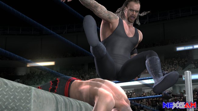 Gameplaytechnisch hieß es bei THQ weniger ist mehr, zumindest was die Veränderungen angeht. So kann man in der 2008er Variante neuerdings Kampfstile auswählen, die dann Einfluss auf euer Kampfverhalten haben. Der Kämpfer mit dem Attribut „Powerhouse“ slamt den Gegner nur so durch den Ring, dass es kracht. Solltet ihr aber eher unfair eingestellt sein, bedient ihr euch einiger fieser Tricks. Der Ringrichter wird als Schutzschild mißbraucht und ein Würgegriff gehalten trotz Rope Breaks. Durch die insgesamt 7 unterschiedlichen Kampfstile kommt also ein zusätzlicher taktischer Effekt dazu, denn je nach Neigung stellt ihr eure Kampftaktik um. Ebenfalls neues Gameplayelement ist das Kampf-Submission System. Hier könnt ihr mit Hilfe des rechten Analogsticks bestimmen wie stark ihr euren Submission Griff ausführen wollt. Das will überlegt sein, denn wer immer vollen Zug gibt, dem geht selbst schnell die Puste aus und man schleppt sich nur noch schwer atmend durch den Ring.