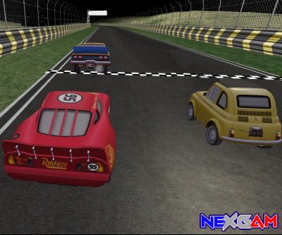 Eine ausufernde Fahrsimulation ala Gran Turismo ist spielerisch natürlich nicht zu erwarten. Viel mehr steuern sich Lightning & Co. butterweich in feinster Arcade-Manier über die staubigen Pisten. Etwas Tiefgang verspricht die Speed-Anzeige, welche - einmal aufgefüllt - einen leichten Geschwindigkeitskick verspricht. Leider haben sich die Entwickler einen Rückspiegel ebenso gespart wie eine vernünftige K.I., stattdessen findet der berüchtigte Gummiband-Effekt Verwendung. Ganz gleich wie gut oder schlecht ihr eure Runden dreht, die Widersacher kleben stets am Heck.