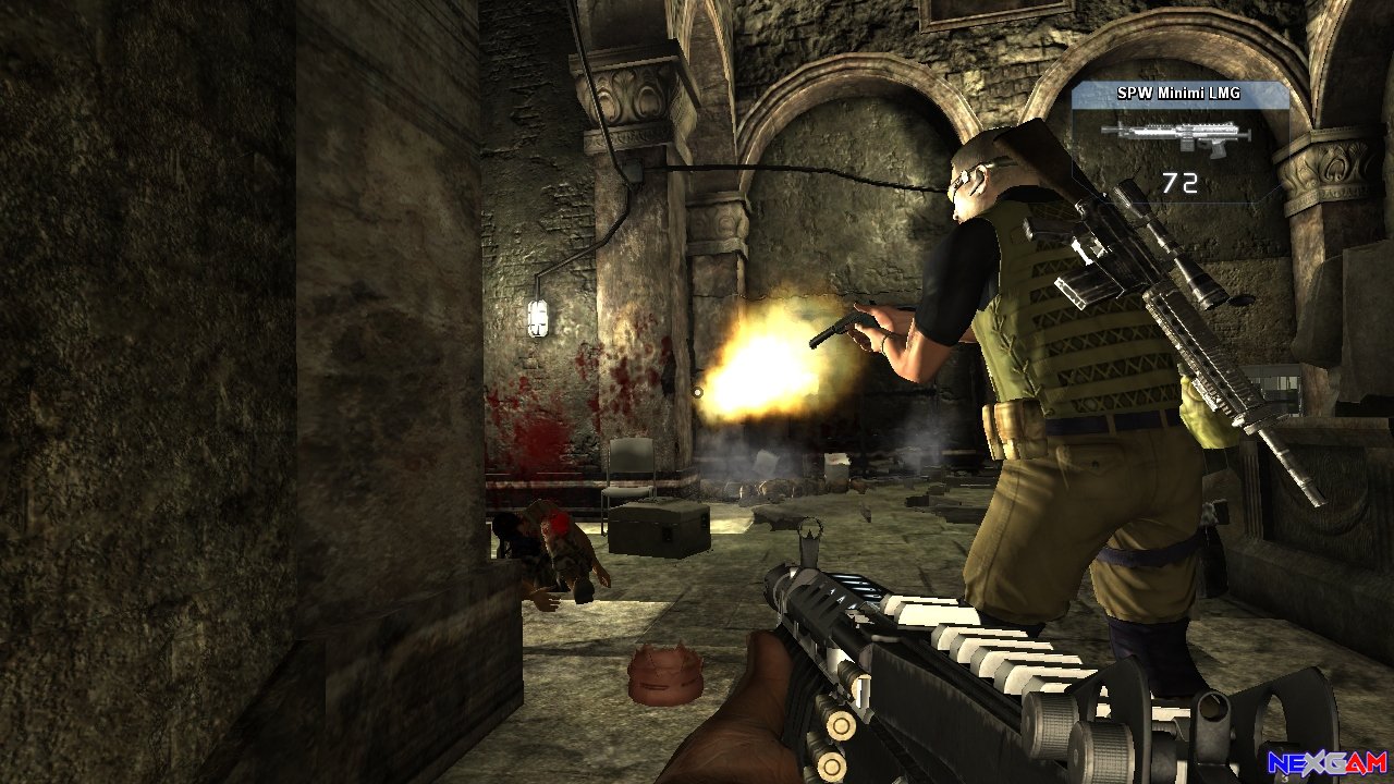 Nach dem Einstellen des Schwierigkeitsgrades geht's auch direkt rund. Das Gameplay ist sehr simpel gestrickt und geht schon nach wenigen Minuten flüssig von der Hand. Neben den Standardfunktionen wie Laufen, Schießen, Ducken und so weiter ist es auch nicht weiter schwer den Partner an einen bestimmten Punkt zu kommandieren, die Waffe zu wechseln oder eine Granate zu werfen. Meist bedürfen diese Aktivitäten nur einem Knopfdruck. Das Waffenarsenal, was anfangs noch sehr spartanisch wirkt, wird im Spielverlauf auch durch jede Menge weitere Schießeisen und sonstige hilfreiche Gegenstände aufgestockt, sodass man in späteren Leveln Zugriff auf ein umfangreiches Kriegsrepertoire hat.