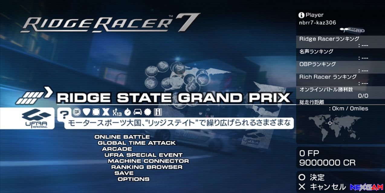 Online rast Ihr gegen Menschen aus der ganzen Welt um den besten Ridge Racer zu ermitteln. Am Anfang muss man sich ein Profil erstellen welches die „Ridge State ID card“ ist. In dieser ID Card werden dann auch kommende Gewinne wie Meisterschaften und Cups eingetragen und sind dann für jeden anderen ersichtlich. Im Weltnetz kann man entweder einem bestehenden Raum betreten, wo schon gefahren wird und sich dan mit diesen Fahrern duellieren, oder man man macht einen eigenen auf. Dort dürft Ihr festlegen welche Strecken, Wagen etc.für dieses Rennen verfügbar sind. Grafisch hat sich im Vergleich zum XBox-Vorgänger nicht viel verändert - Hier und Dort wurden den recycelten Strecken neue Details gegönnt, aber im großen und ganzen ist die Optik identisch. Immerhin scrollt die Strecke mit butterweichen 60fps an euch vorbei - egal wieviel Racer sich grad auf der Piste tummeln. Der Sound ist ebenfalls gelungen und den Vehikeln wurden verschiedene Motorensounds spendiert. Die Musikuntermalung bietet wieder reichlich aufpeitschende Beats, die Rennen gekonnt antreiben.